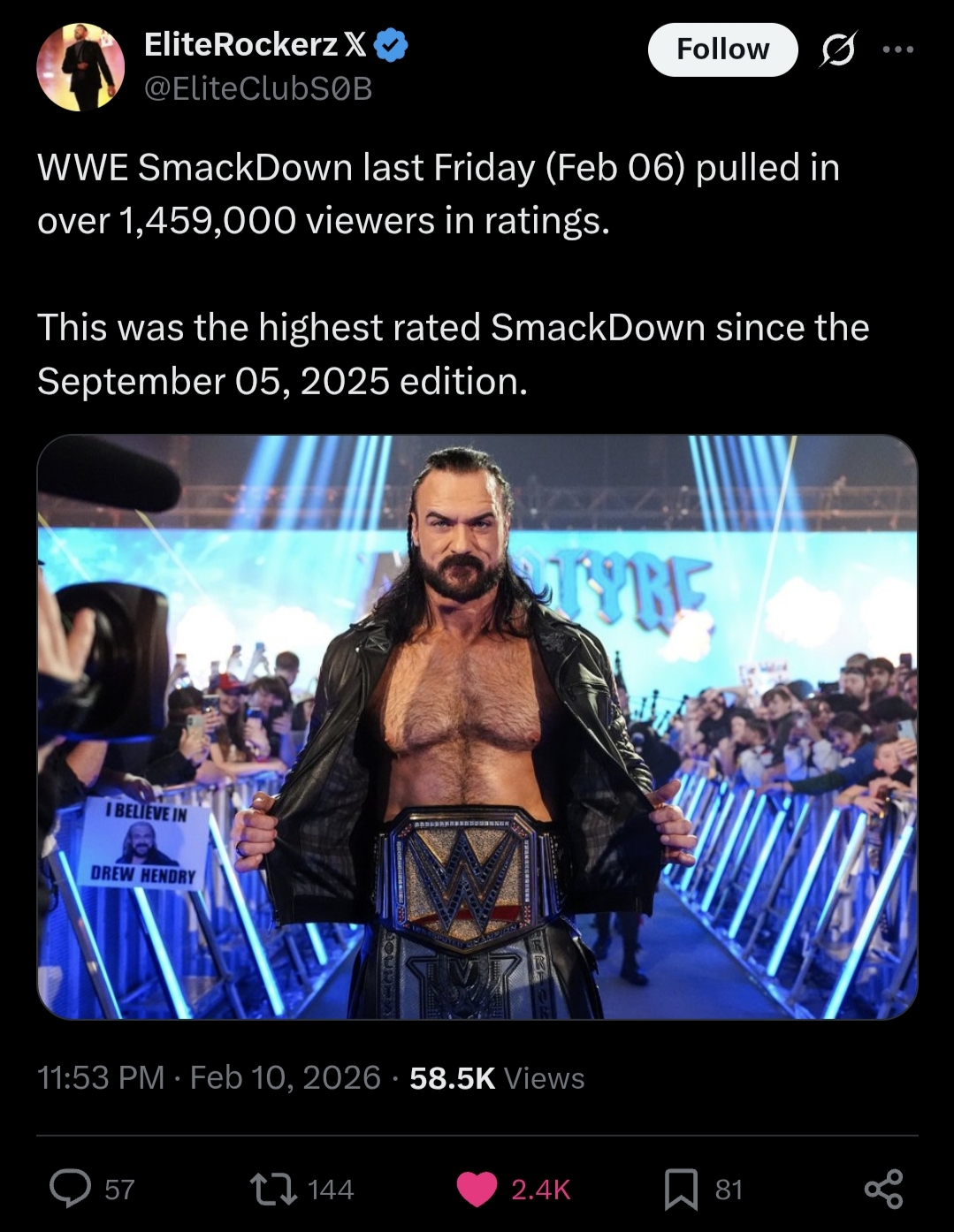 >>19874919I don't keep up with schizolore enough to know everything you're talking about. When Raw got that huge rating increase on the first episode this year I just thought it was funny to say it was because of Liv returning to the ring. In threads about Liv or gamethreads when she was having a segment, I'd call her "Megadraw Morgan" or something like that every now and then, but it was all in good fun, because she as a shoot is pretty much the only reason I even watch the shows. I never meant to incite spam threads or trigger any autists here into spamming 24/7 about Liv.I'm sorry for any heat I caused for any of you brothers