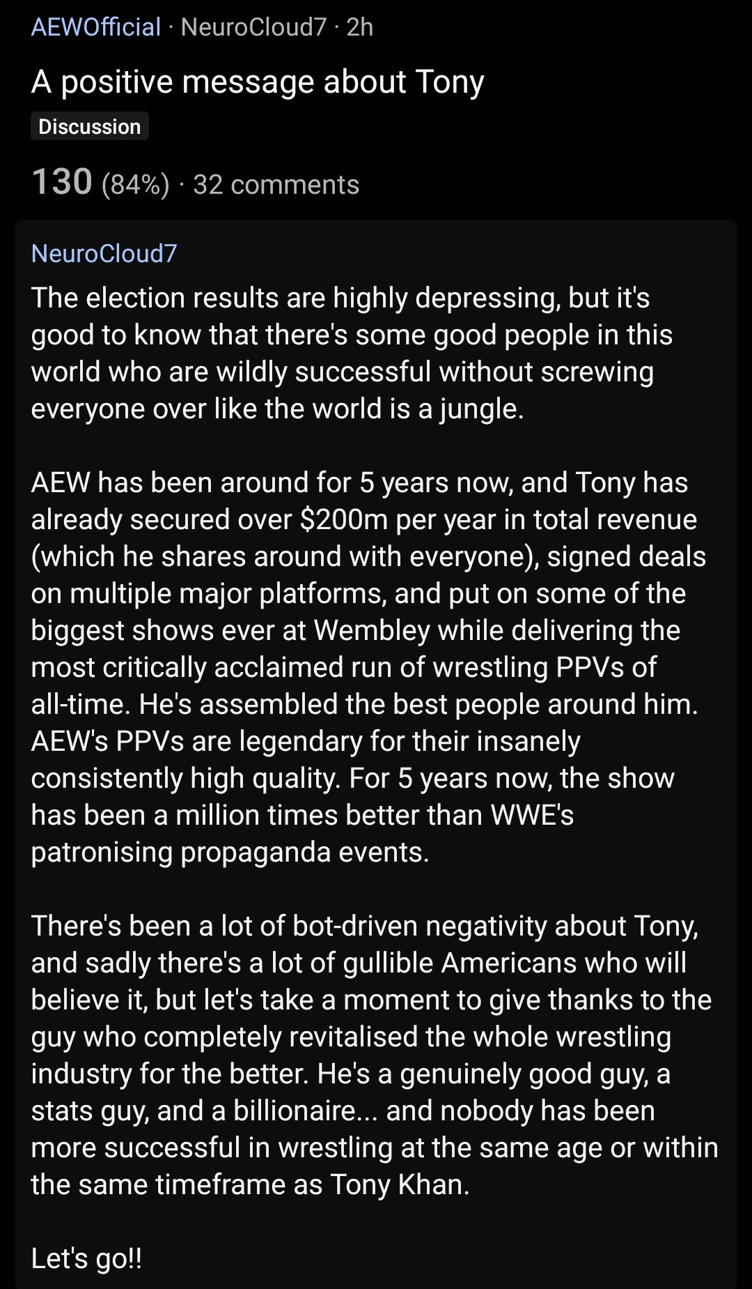 This thread created so much seethe the singular AEW pedo has defended Tony Kwab so much it hit the bump limit in a few hours. Truly grim
