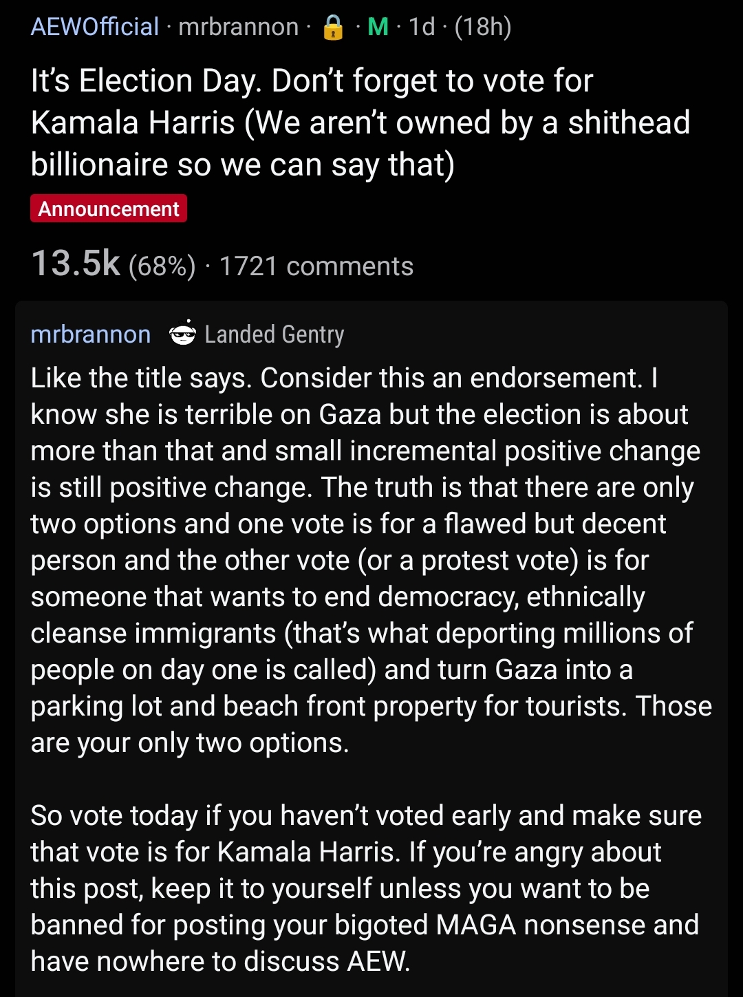 >>19878616>WWE doesn't want the wrestlers to talk about politics.They do though? All the time? Roman sucked Trump's cock like all the island cucks do