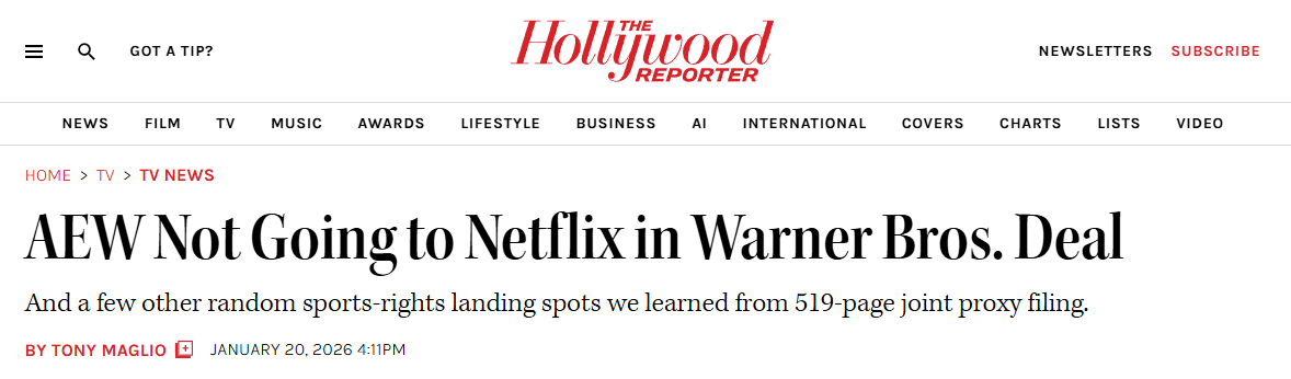 >AEW accidentally does something that gets mainstream coverage because a wrestler who drinks his own piss is anti-ICE>blocked from doing it again because WB Discovery is in the middle of selling>Which AEW won't be a part of after it sells>But AEW also can't go against it because WB Discovery has part-ownership of AEW which Tony agreed to in order to keep them on the airCan't make this shit up, reset the counter