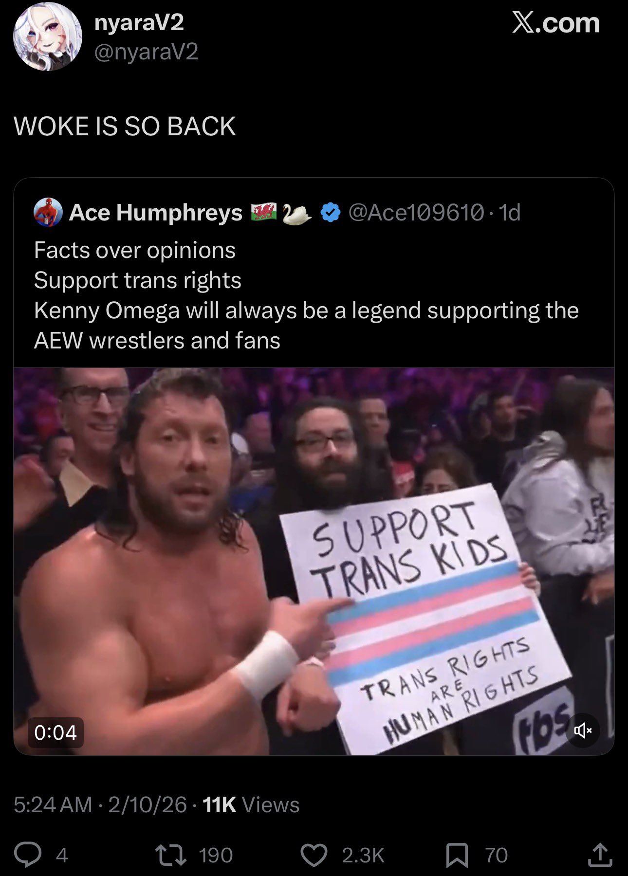 It's retarded but it's also really fucking funnyI love how everytime the gayEW fanbase exults at yet another leftie victory, they're reminded that the boss is a spineless nepobaby who doesn't give towo shuts about their tranny delusions but will entertain them cause nobody else is watching his show, then they just go on ignoring that