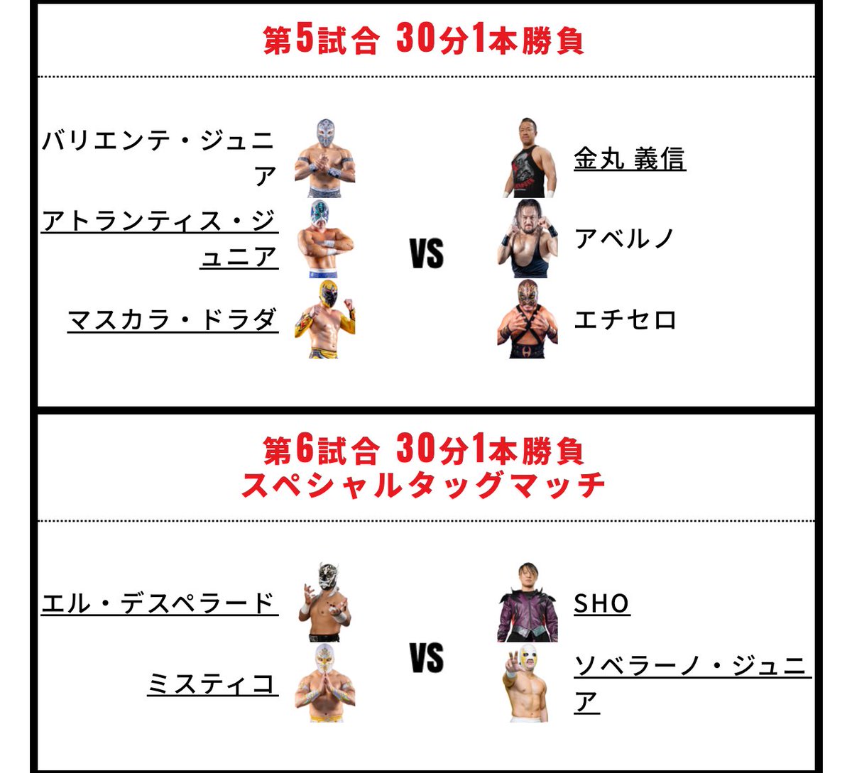 >Masatora Yasuda, Valiente Jr., & Futuro vs Tatsuya Matsumoto, Master Wato, & Ryusuke Taguchi