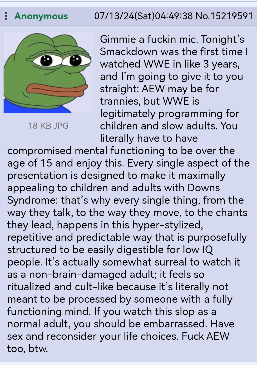 This anon nailed it. We're yet to see a single refute and never will because it's the biggest truth nuke dropped on modeen WWE programming.