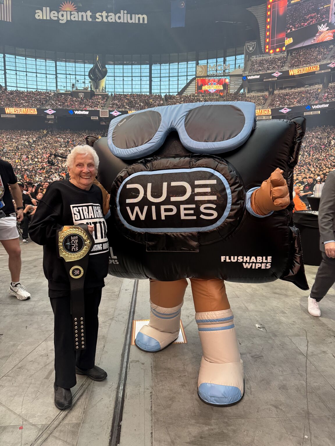 What does it say about the WWE audience that Dude Wipes is paying to advertise directly to WWE fans? Companies don’t make those decisions randomly, they’re based on market research and data.Most likely, someone from Dude Wipes attended a WWE event, caught a whiff of something unpleasant in the crowd, and thought, “Yep, there’s our target market.”
