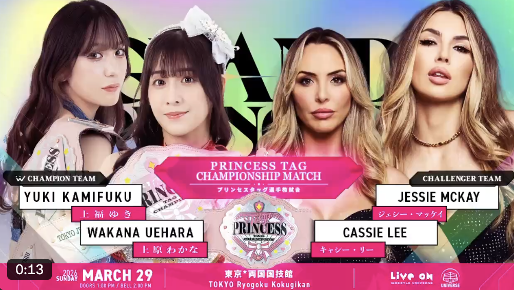 Watch on Wrestle Universe - 1,298 yen per month.https://www.wrestle-universe.com/enSchedule2.21 Final Curtain in KOBE Art Center @ Kobe Art Center, Hyogo (VOD)[12:30 JST]2.22 Love & Flame~The Burning Venus Returns~ @ Okayama Mirai Hall, Okayama (VOD)[12:30 JST]2.28 First Sparkle at Aioi Hall @ Kariya Industrial Promotion Center, Aichi (VOD)[12:30 JST]Previous >>19894807