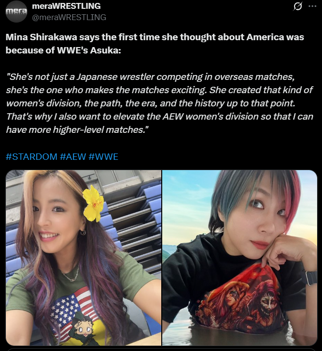 >>19911034Mina has also said Asuka has spoken to her privately a lot over the years giving her advice/insight etc into her wrestling and advancing internationally. She keeps tabs on her from a distance. big booba JP players stick together. what a wonderful caring mother joshi