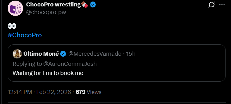 >This is obviously about Mercedes, but JCR stalls by previewing the rest of 03/06.>02/24: Olympia & Persephone vs Tessa Blanchard & Zeuxis>02/27: winning team faces off to get the shot against Mercedes on 03/06https://x.com/luchablog/status/2024315057048322451