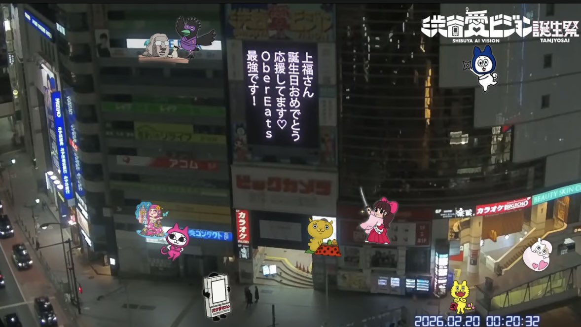 >\February 20th, 0:00〜/ >#ShibuyaLoveVision Birthday Celebration>Featured Love Messages>Kamifuku-san >Happy birthday >Cheering for you >OberEats >You’re the strongest!