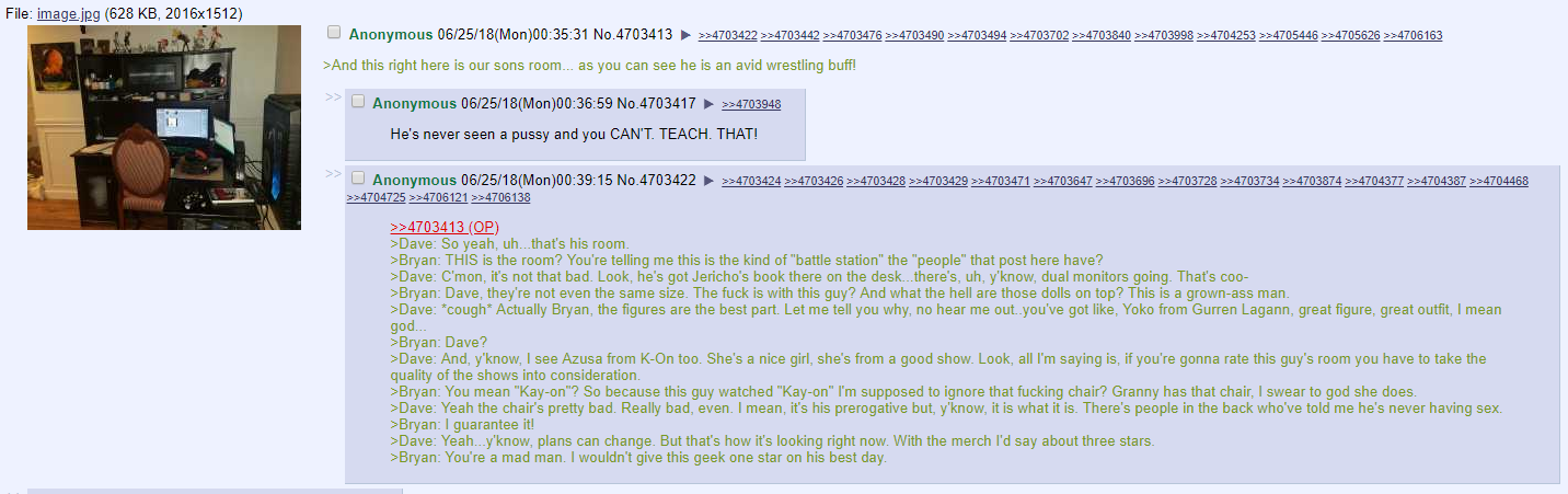 >>19921514nah that's not a stardom fan. first of all, a stardom fan wouldn't have deodorent on his desk or anywhere else. instead of sci-fi posters he would have little japanese girls all over the walls, and the posters would be covered in crusty yellow old spunk. a stardom poster would also be brown and indian, which means his floor would be covered in human excrement too. so yeah, this guys a nerd but nowhere near as bad as a stardom fan.>>19921735now this pathetic motherfucker right here is a true simp. this is the real deal here.