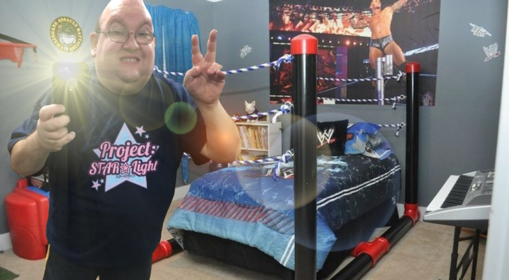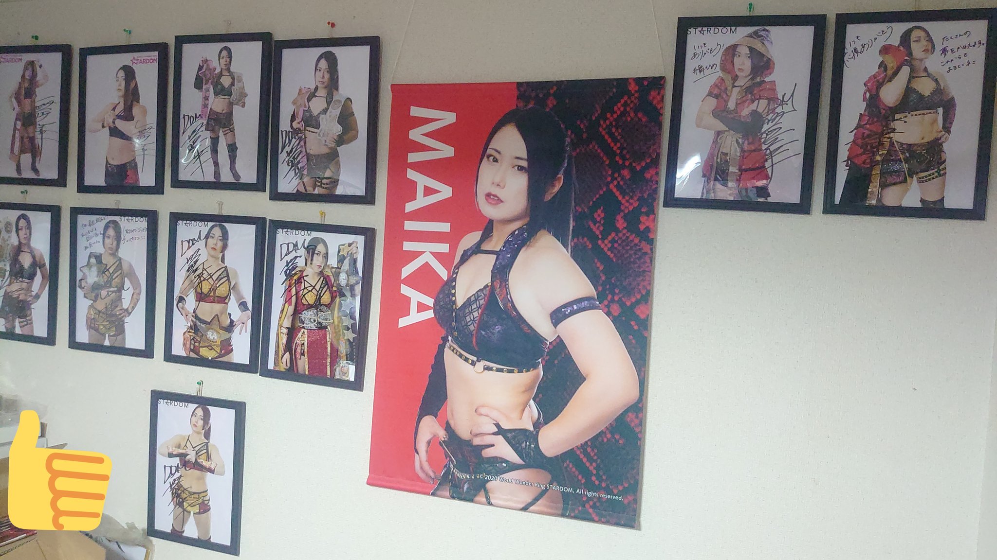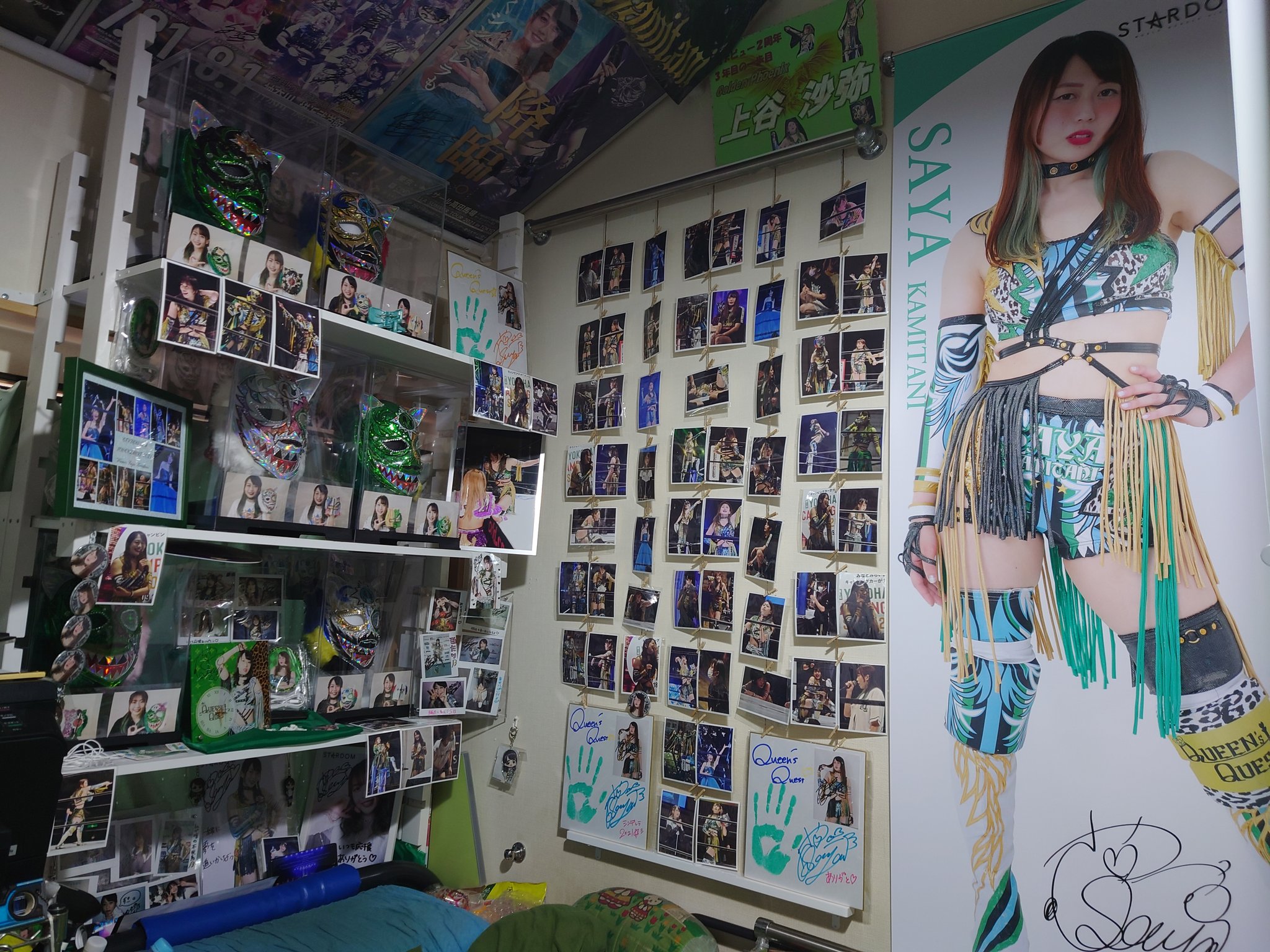 >Yeah, here’s my son’s room, he’s a big Stardom fa-