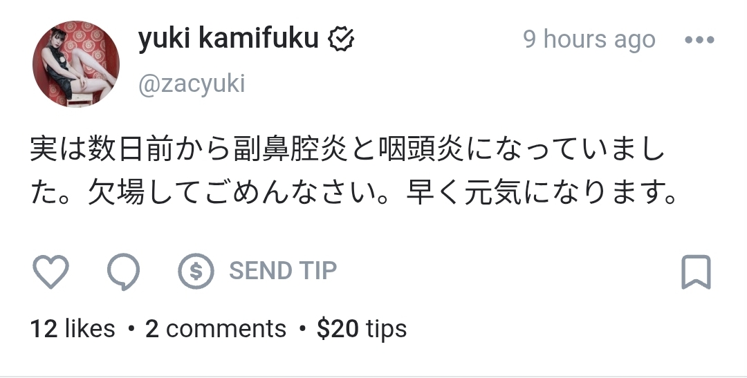she said on OF a few days ago that she was sick