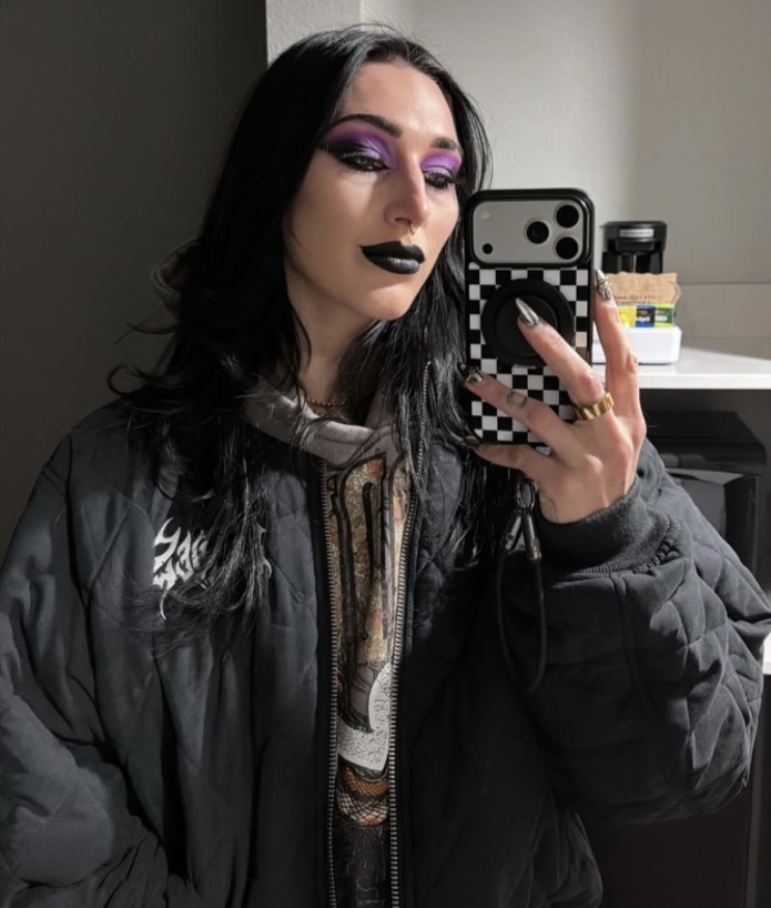 And the only female emo goth death metal vibe givin gal I could think of atm was rhea ripley!