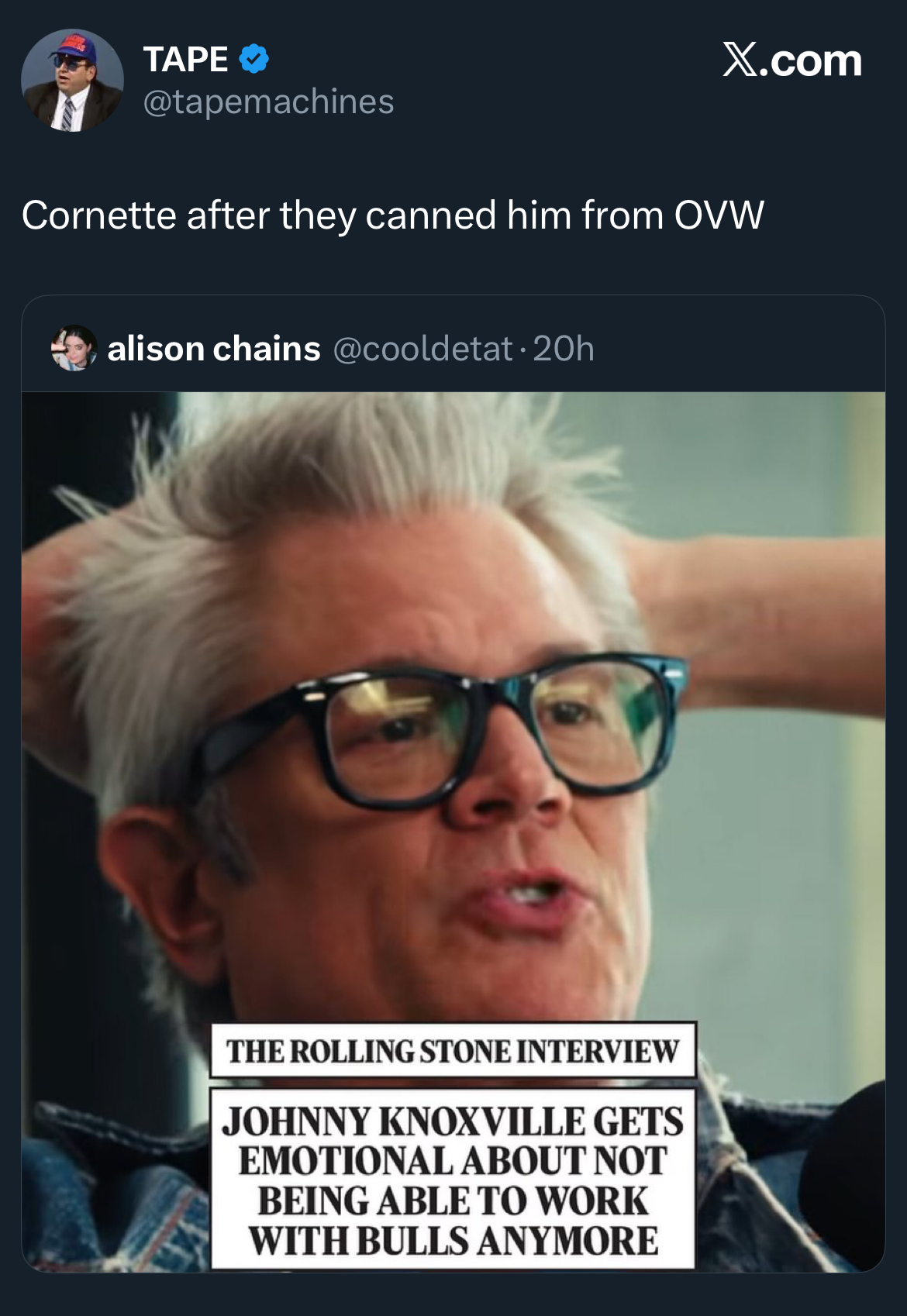 lol, also that clip is weirdly emotional kinda sad seeing knoxville realize he is too old to do stunts