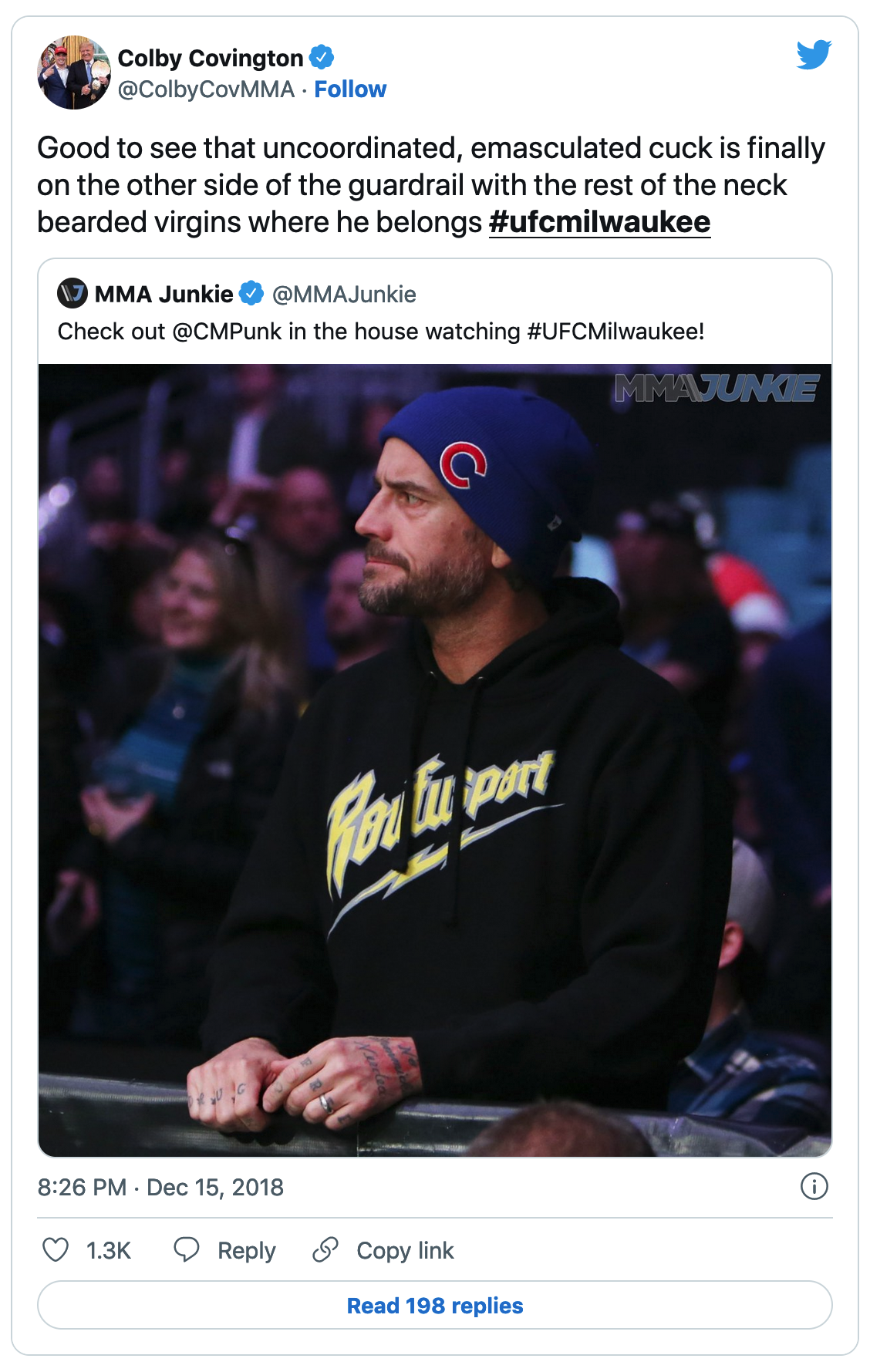 >>19961807Colby is a shoot faggot though and Punk is the furthest thing from a "virgin"