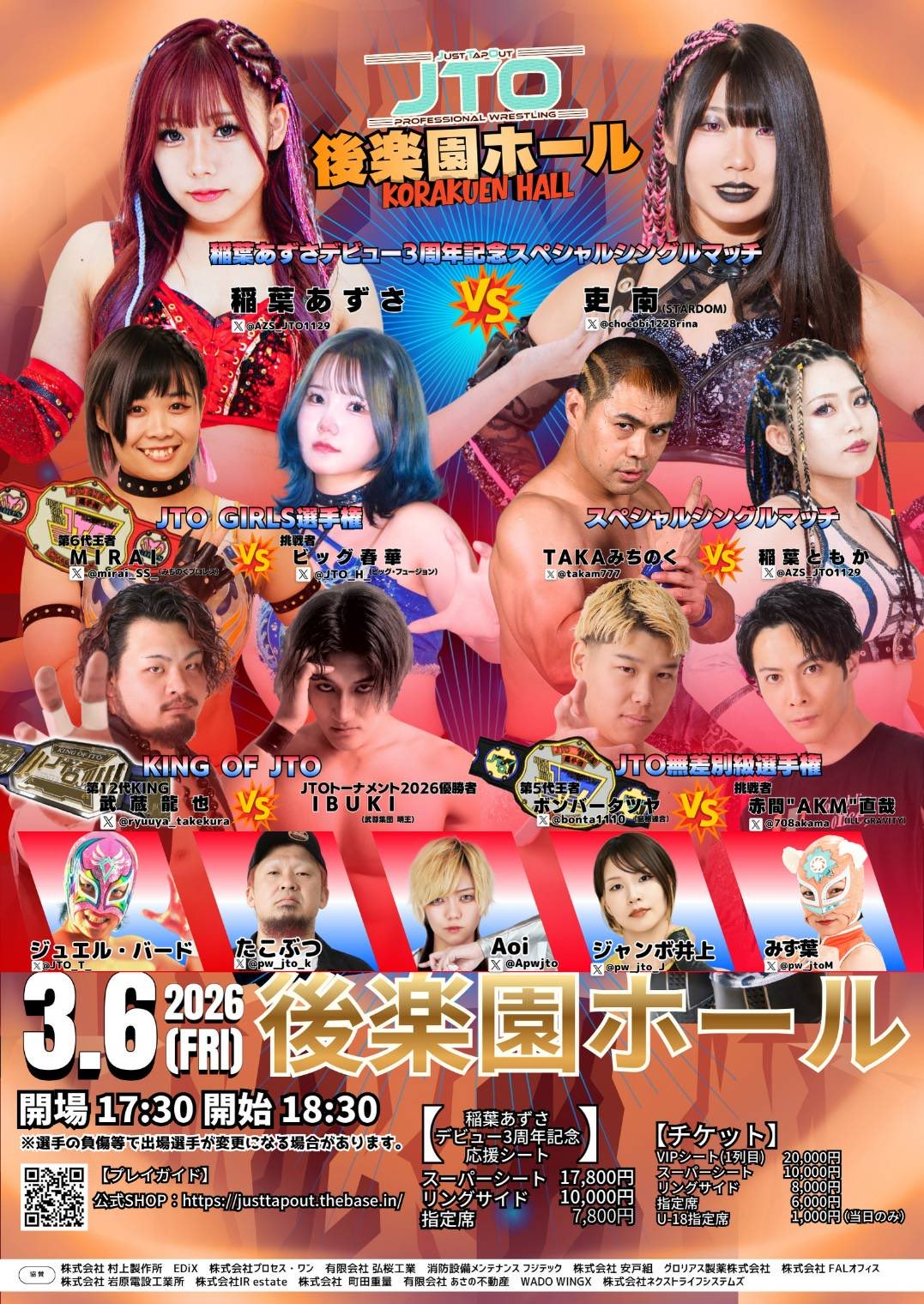February 27th, [NJPW] "The New Beginning USA", CURE Insurance Arena, Trenton, 8:00PM EST (PPV)>IWGP Women's Championship: Syuri (c) (STARDOM/God's Eye) vs Athena (AEW)>Rest of card: https://www.njpw1972.com/tornament/card/605104February 28rd, "STARDOM in KORAKUEN 2026 Feb.", Korakuen Hall, Tokyo, 11:30AM JST (LIVE)>Natsupoi, Saori Anou, Yuna Mizumori, Aya Sakura & Sayaka Kurara (COSMIC ANGELS) vs Natsuko Tora, Ruaka, Rina, Azusa Inaba & Fukigen Death (H.A.T.E.)>Tomoka Inaba & Kiyoka Kotatsu (God's Eye) vs Maika (-) & Xena (-) vs Maki Itoh & Kikyo Furusawa (Itoh Respect Army)>Saki Kashima (God's Eye) & Rina Yamashita & Itsuki Aoki (Mi Vida Loca) vs Waka Tsukiyama (-), Rian (-) & Anne Kanaya (-)>Ami Sohrei, Lady C & Ranna Yagami (God's Eye) vs India Sioux (CMLL), Tabata (CMLL) & X>Sareee & Takumi Iroha (Spark Rush) vs Hazuki (-) & Fuwa-chan (-)>Hanan, Saya Iida, Momo Kohgo & Yuria Hime (STARS) vs Starlight Kid, AZM, Mei Seira & Miyu Amasaki (NEO GENESIS)>Future of Stardom Championship: HANAKO (c) vs Akira Kurogane (Mi Vida Loca)>Wonder of Stardom Championship: Konami (c) (H.A.T.E.) vs Hina (God's Eye)March 1st, "STARDOM in KARIYA 2026 Mar.", Kariya City Industrial Promotion Center Aioi Hall, Aichi, 2:00PM JST (VOD)>Yuna Mizumori (COSMIC ANGELS) vs Anne Kanaya (-)>Saori Anou (COSMIC ANGELS) vs Saki Kashima (God's Eye) vs Fukigen Death (H.A.T.E.)>Maki Itoh & Kikyo Furusawa (Itoh Respect Army) vs Waka Tsukiyama (-) & Rian (-)>AZM & Miyu Amasaki (02line) vs Rina Yamashita & Akira Kurogane (Mi Vida Loca)>Hazuki (-) & Tabata (CMLL) vs India Sioux (CMLL) & Natsupoi (COSMIC ANGELS)>Aya Sakura & Sayaka Kurara (COSMIC ANGELS), HANAKO (-) & Ranna Yagami (God's Eye) vs Konami, Natsuko Tora, Ruaka & Rina (H.A.T.E.)>Hanan, Saya Iida, Momo Kohgo & Yuria Hime (STARS) vs Ami Sohrei, Hina, Lady C & Kiyoka Kotatsu (God's Eye)Previous >>19963323