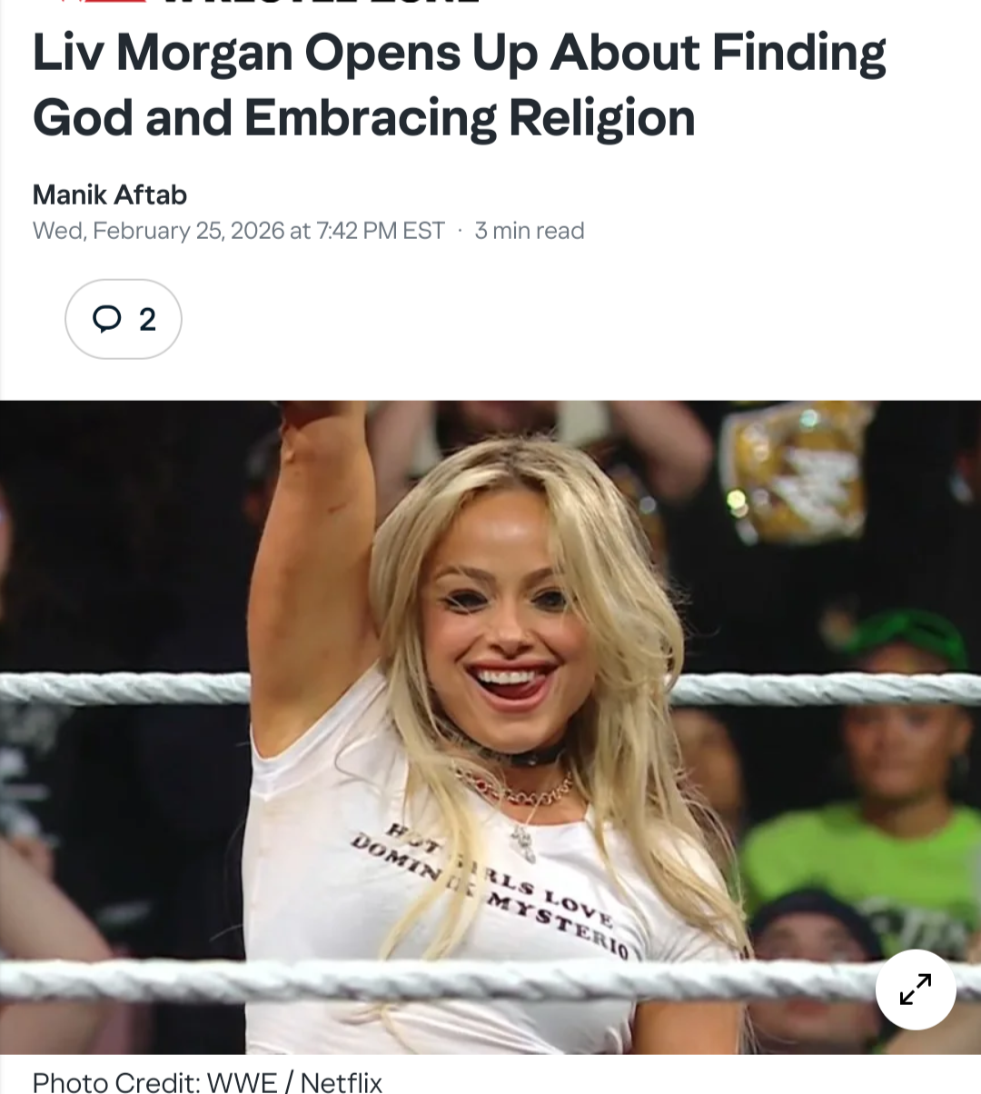 >During a recent appearance on Bradley Martyn’s RAW Talk, Liv Morgan opened up about her spiritual journey after being asked whether she is religious.>The WWE Superstar explained that she’s been on a personal spiritual journey for some time, describing it as a calling that prompted her to explore her spiritual side.>“Um, you know, I’ve been on a journey over the last five months or so. I think I might have found God,” said Morgan. “It sounds cliché, but I felt a calling. Certain things happened that felt like coincidences, but they made me feel like maybe I was supposed to start a relationship with God or at least explore it.”>The Judgment Day star explained she didn’t grow up actively following religion and that church never resonated with her, despite attending several times.>“I didn’t grow up very religious… went to church a couple of times, but it didn’t really resonate with me. I went through my whole adult life not really believing in God, but not openly denying Him either. It’s weird because before every match, I would do the sign of the cross without fail. At the same time, I would still question whether God was real. That’s kind of how my whole life has been.”>Morgan revealed that she began noticing signs that prompted her to explore her spirituality. This sparked a personal journey of faith, and she now experiences a deep, emotional connection.>“A couple of months ago, little things kept happening that made me feel like I should lean in and try to connect. So I’ve been on my own journey. I believe now, and it honestly makes me emotional. I can feel this unconditional love, and that brings tears to my eyes."