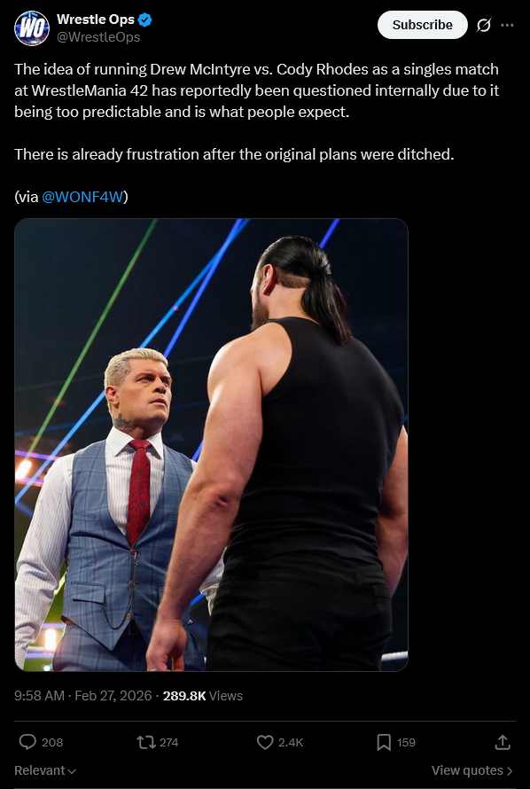 Cody pushed to have Drew in the belt and now they've booked themselves into a corner with 2 months to Mania