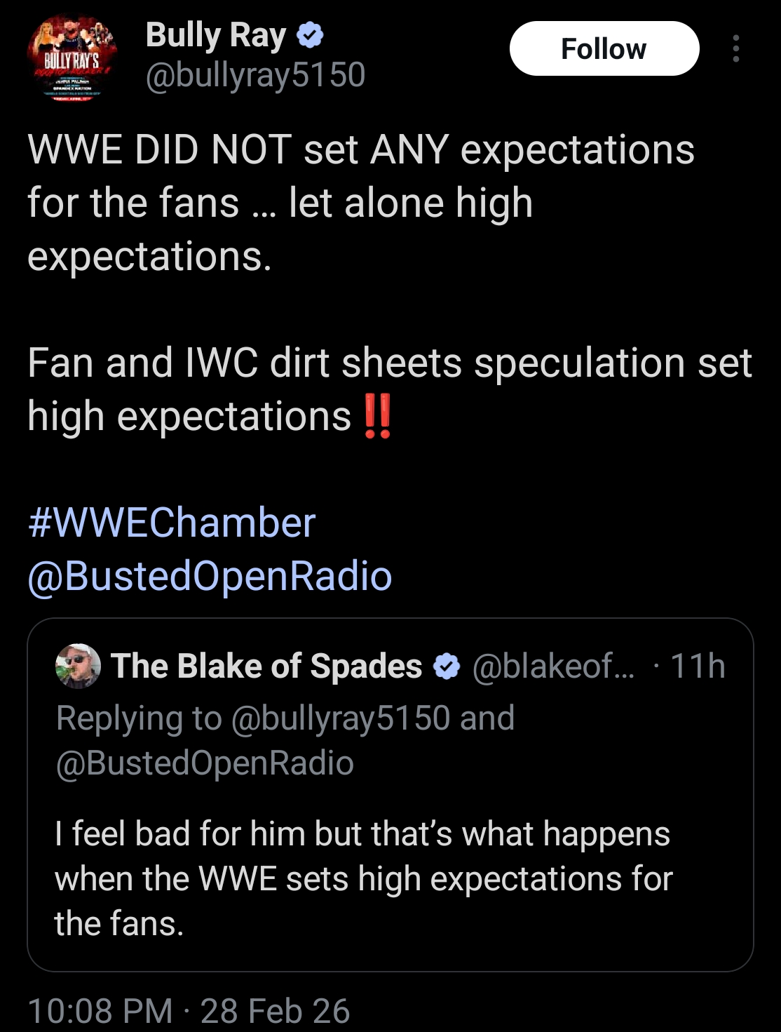 >sorry you had expectations, but WWE is supposed to suck