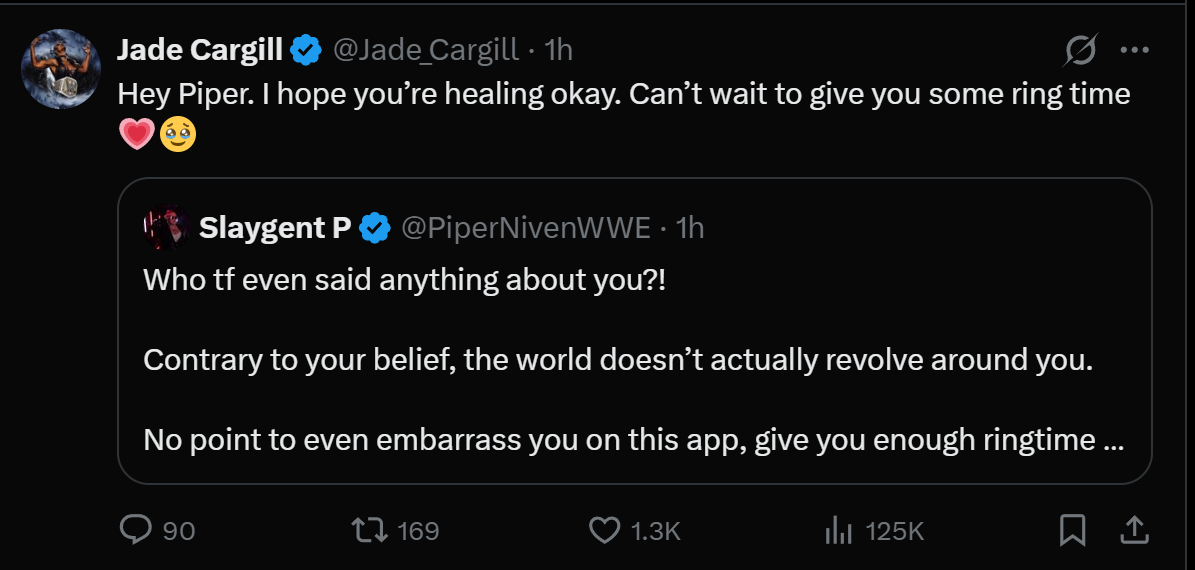 Piper’s an obese blob that got struck down for trying to shit talk Dijak on twitter. Chelsea’s a vapid, meme wrestler that’s cucking her husband. Rhea’s a whiny cunt. I’m team Jade.