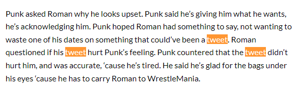 I gotta say the line about having to drag Roman through 7 more weeks of promos hit for me