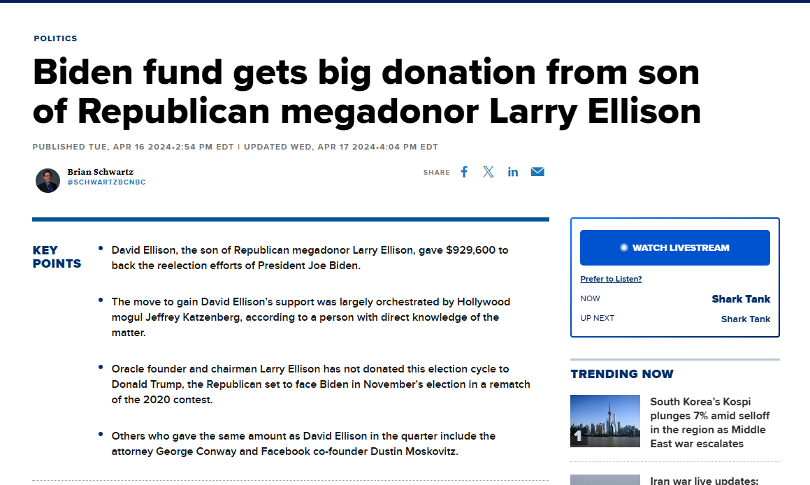 Larry Ellison controls like 70% of media now, all so their news stations can worship Israel.