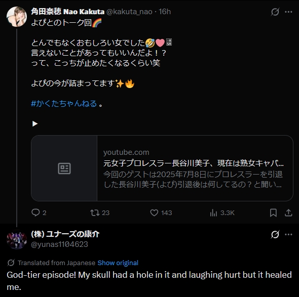 https://x.com/t346fire/status/2029507948121346124>I've successfully scouted an idol who can participate in the 3.29 TJPW Ryogoku Kokugikan event without any issues, so I'll be bringing them to the TJPW Shin-Kiba event on the 7th!
