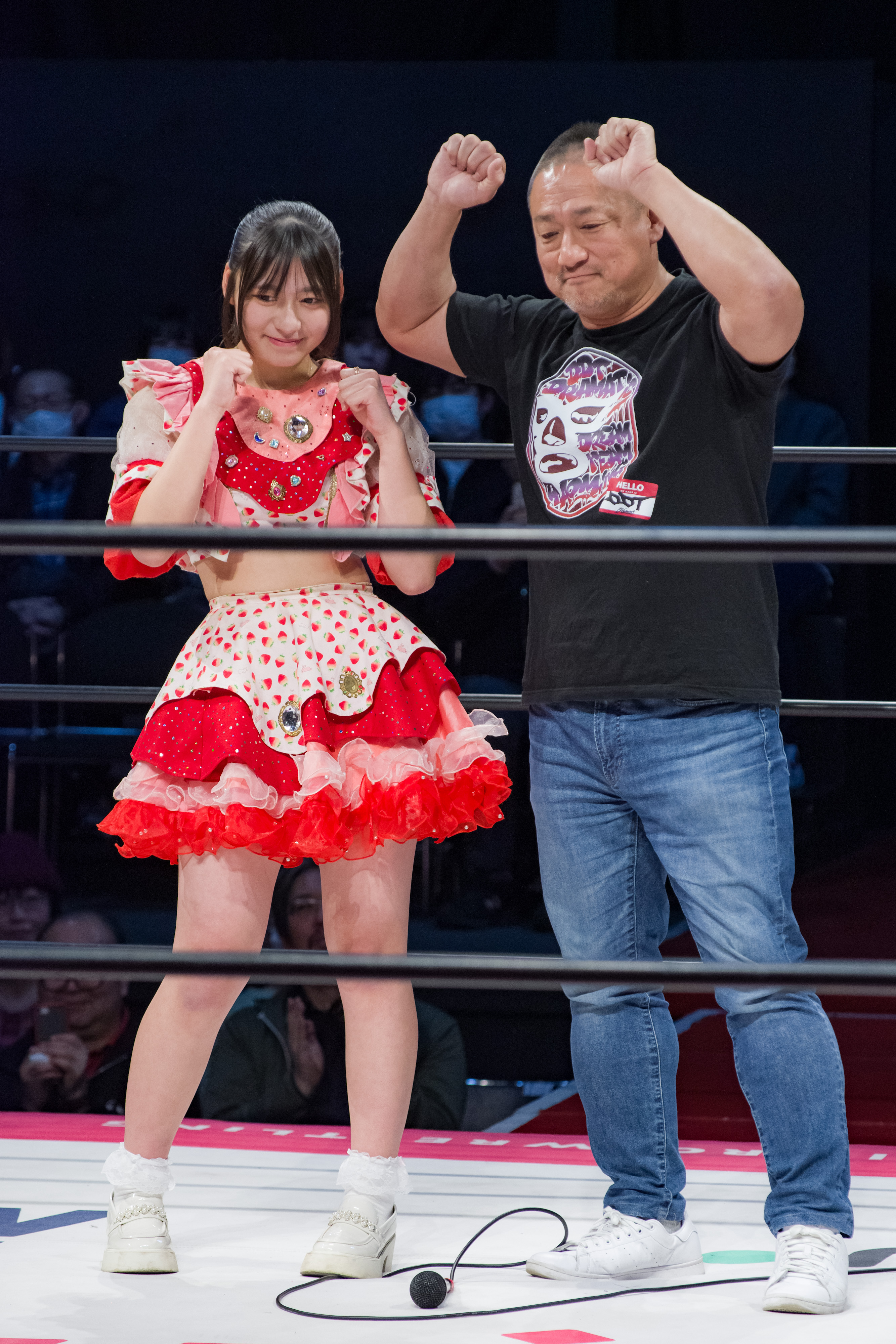 >>20020603[Today's Breaking News]The Iron Man Heavy Metalweight Championship Staggered Entry Battle Royale will be held at the Ryogoku Kokugikan on Sunday, March 29th!Harajuku Gakuen's Sato Momo, an idol scouted by Sanshiro Takagi, has been confirmed to participate!DDT's Sato Daichi's younger sister, 15 years old, will be entering high school this spring!