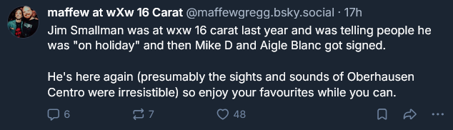 Weird, I never hear these types of complaints when AEW signs some indy or foreign wrestler, only when WWE does it.Hopefully it means we are still getting NXT Europe.
