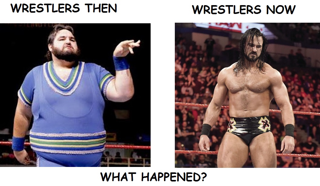 Testosterone levels dropped so you have fewer real men who even look like that and wrestlers upped the anti on workrate, so chances are guys who look like that aren't going to have the passion for the business to keep up and WWE is too tight fisted to pay them to care enough.