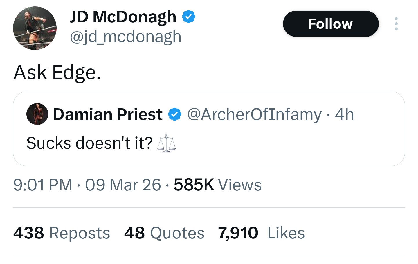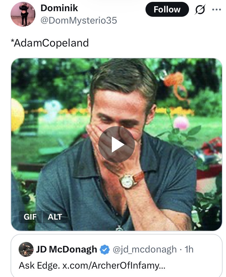 >>20038563Edge is and will always be a WWE superstar. He's just on excursion. Keep begging for more WWE talent though