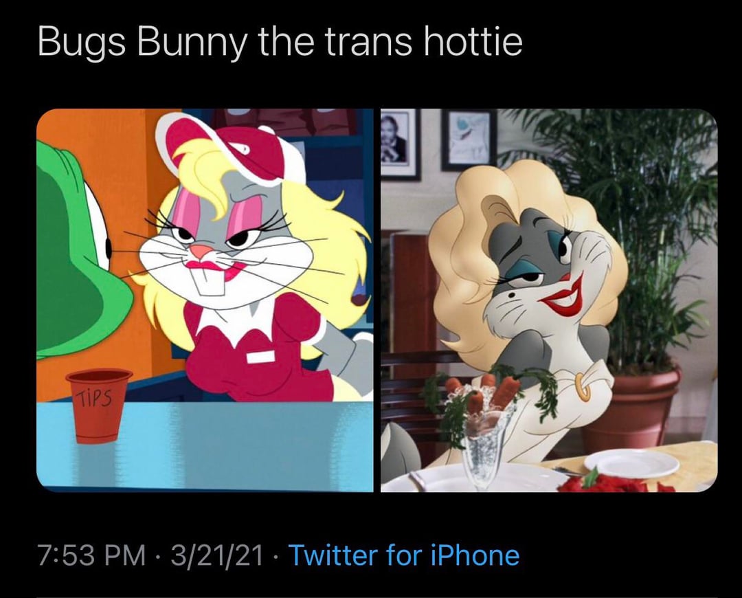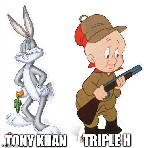 TK is Yosemite Sam, crossdressing Bugs is the modern wrestling fan they're both trying to book for