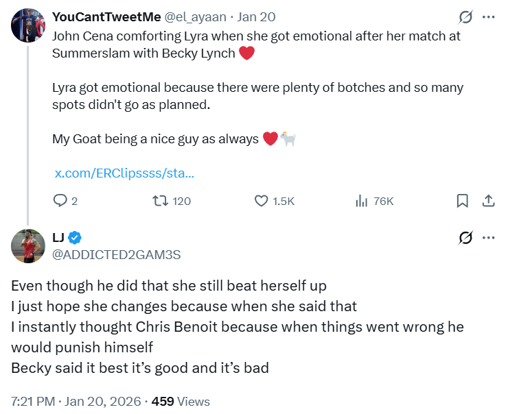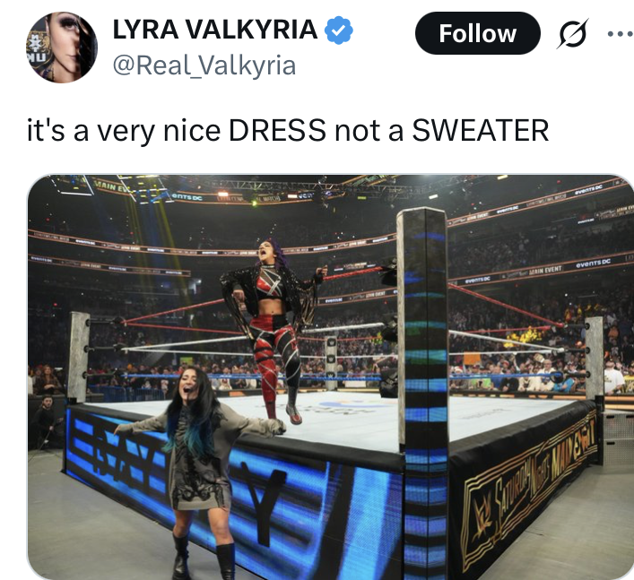 TRUE FRIENDSHIP EDITION!!!As announced last week, Lyra had a match on RAW! The gauntlet match for the opportunity to challenge for the IC title started off with Lyra and Iyo, who both set the bar and had some of the most technical and fun exchanges of the entire night! /ourbirb/ sadly didn't advance, but she came in clutch for Bayley later on, helping her secure a title match next week! We'll see how that goes. The road to Mania continues...Previous: >>19974822WWE Unreal Season 2 is out on Netflix now and features a lot of Lyra! Go watch it!Lyra vs. Iyo highlights: https://www.youtube.com/watch?v=QzCU4veoLgMWatch the CVV interview here: https://www.youtube.com/watch?v=PGyK-wmlCXs&t Celebratory Tyra reunion edit: https://files.catbox.moe/4cqbxb.mp4Socials:https://x.com/Real_Valkyria/https://www.instagram.com/real_valkyria/