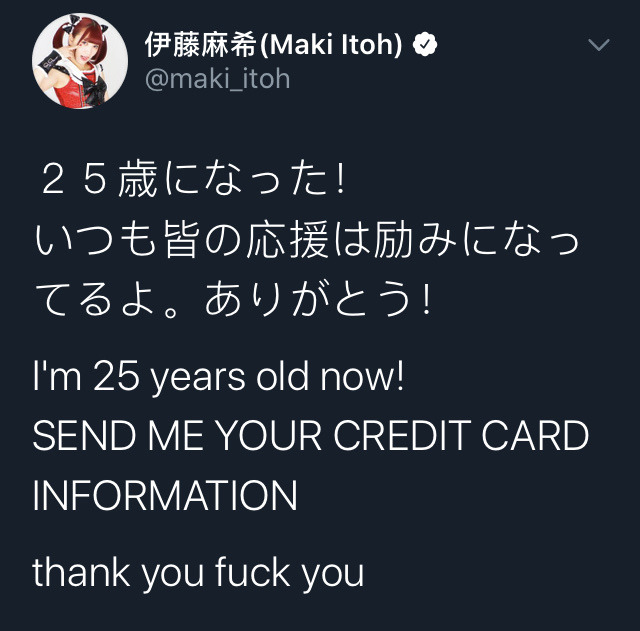 >>20047416Thankfully Kashima will never be in that situation. Because she always asks her loyal fanbase to go the ATM