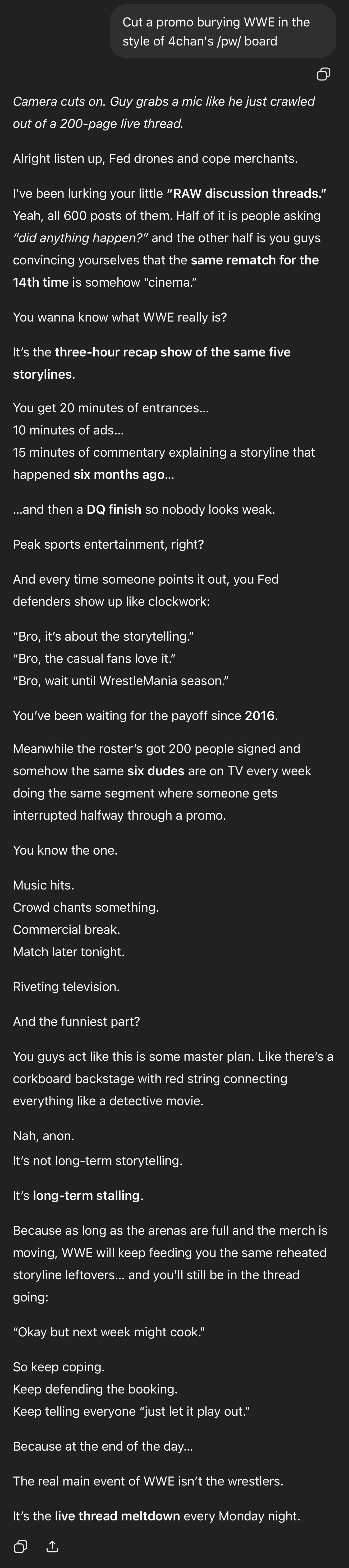 ChatGPT went from booking WWE to burying WWE