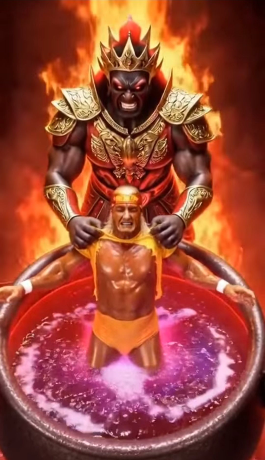 I found an image of Hulk Hogan arriving in hell, brothers.