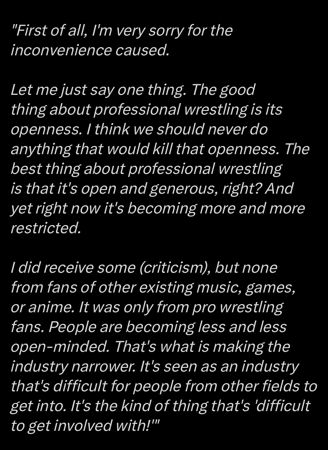 >traitoryou're more upset about it than the Stardom players and management are. What does that tell you?