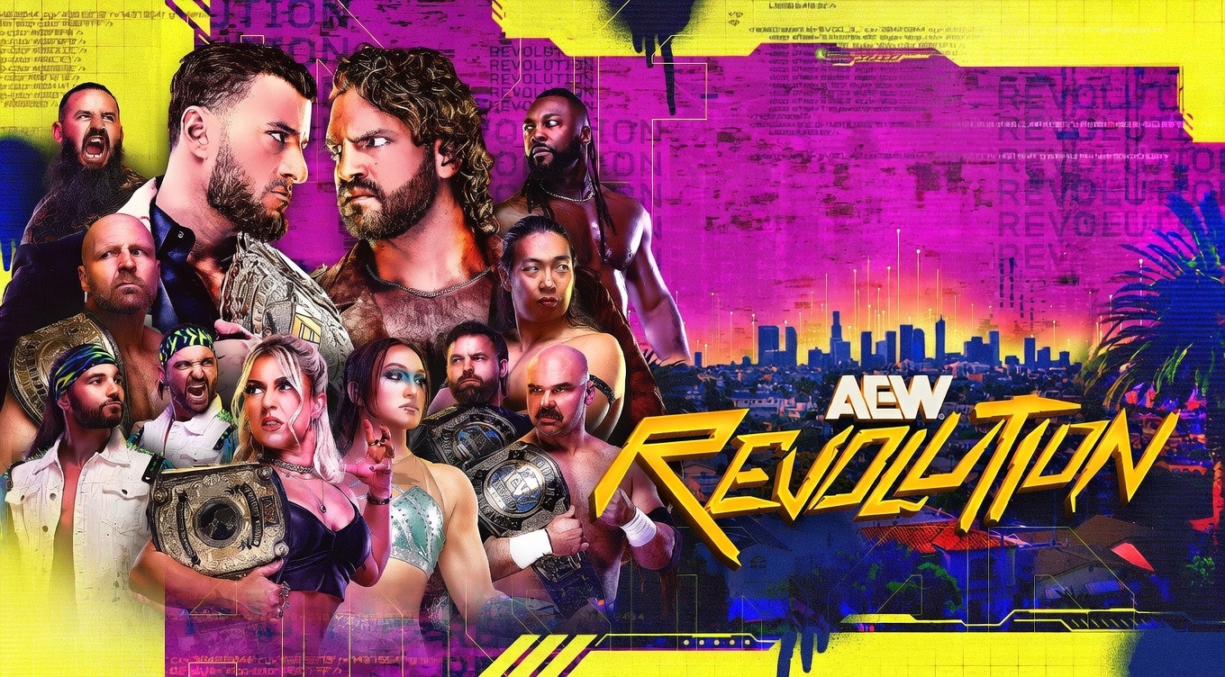 All Elite Wrestling Presents REVOLUTION from a SOLD OUT Crypto Arena in Los Angeles, CAHow To WatchUnited States: HBO MAX, Amazon Prime Video, PPV.com, DAZN, FUBO, and YouTubeInternational: Amazon Prime Video, MY AEW, DAZN, PPV.com, Youtube, TrillerTVMAIN CARD (8pm ET / 5pm PT)>MJF (c) vs. Hangman Adam Page in a Texas Death Match for the AEW World Championship [If Hangman Loses, He Can Never Challenge for the World Title Again]>The Toxic Spider Thekla (c) vs. Kris Statlander in a 2 Out Of 3 Falls Match for the AEW Women's World Championship>FTR (c) vs. The Young Bucks for the AEW World Tag Team Championships>Jon Moxley (c) vs. The Alpha Konosuke Takeshita for the AEW Continental Championship [No Time Limit]>Babes Of Wrath (c) vs. Megan Bayne & Lena Kross for the AEW Women's World Tag Team Championships>Don Callis Family (c) vs. Mistico & Jetspeed for the AEW World Trios Championships>Swerve Strickland vs. Brody King>Bandido vs. Andrade El Idolo>Timeless Toni Storm vs. The Problem Marina Shafir>Darby Allin, Orange Cassidy, Roderick Strong vs. The Dogs in a Tornado Trios Match
