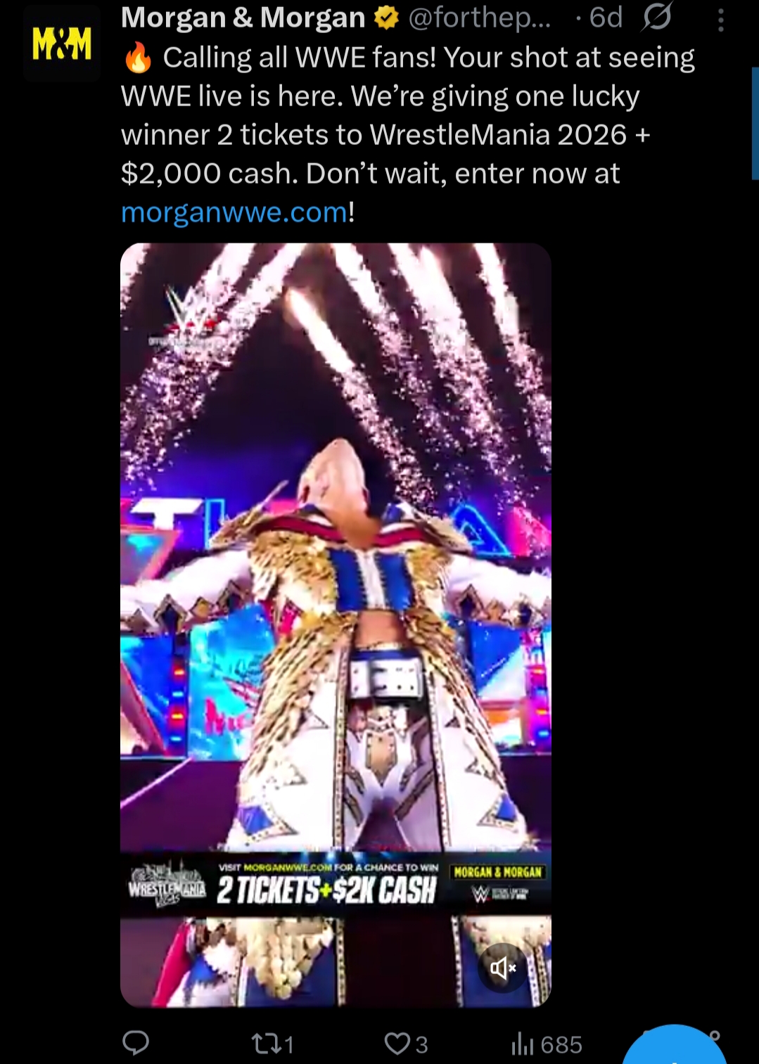 >WWE paid a company to advertise Wrestlemania, with a free ticket giveaway.