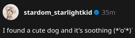 >Good morning world>I can only win.>Soul women's pro wrestling??>We'll hit back with STARDOM soul!>The dark match starts at 15:20, so be careful and come on time~