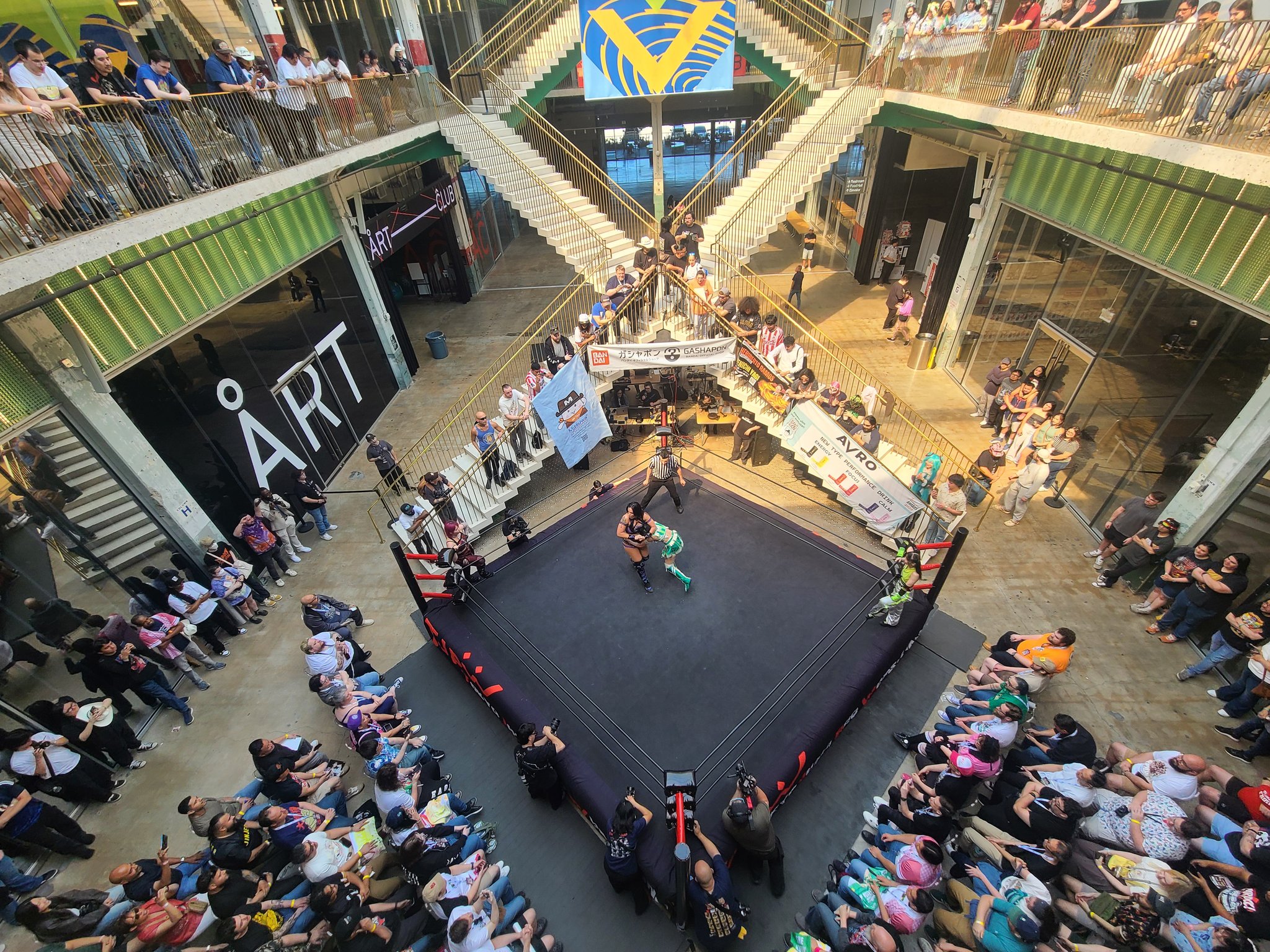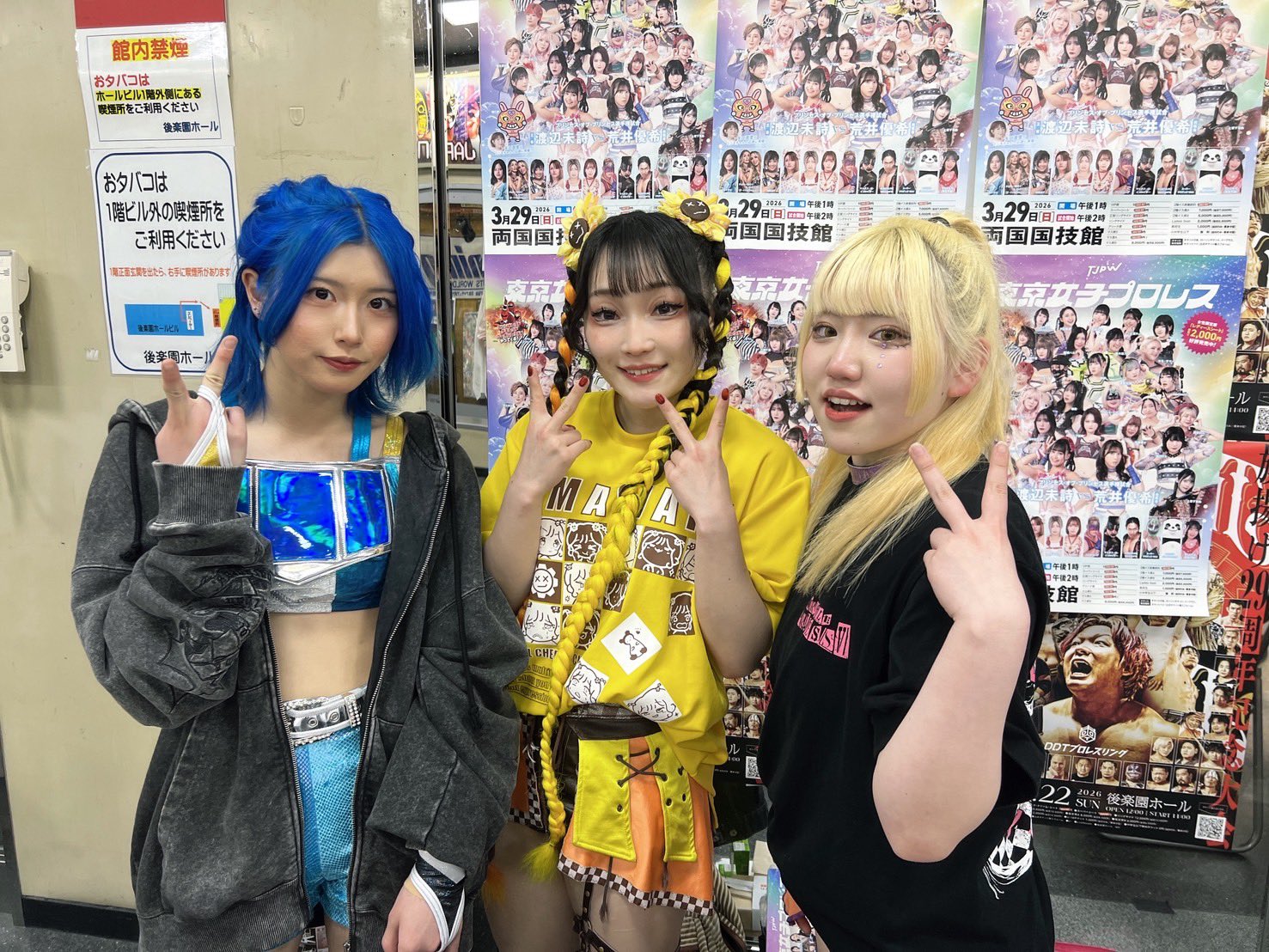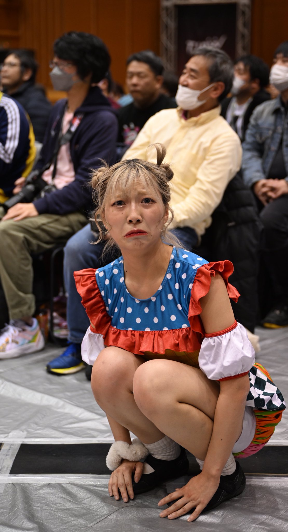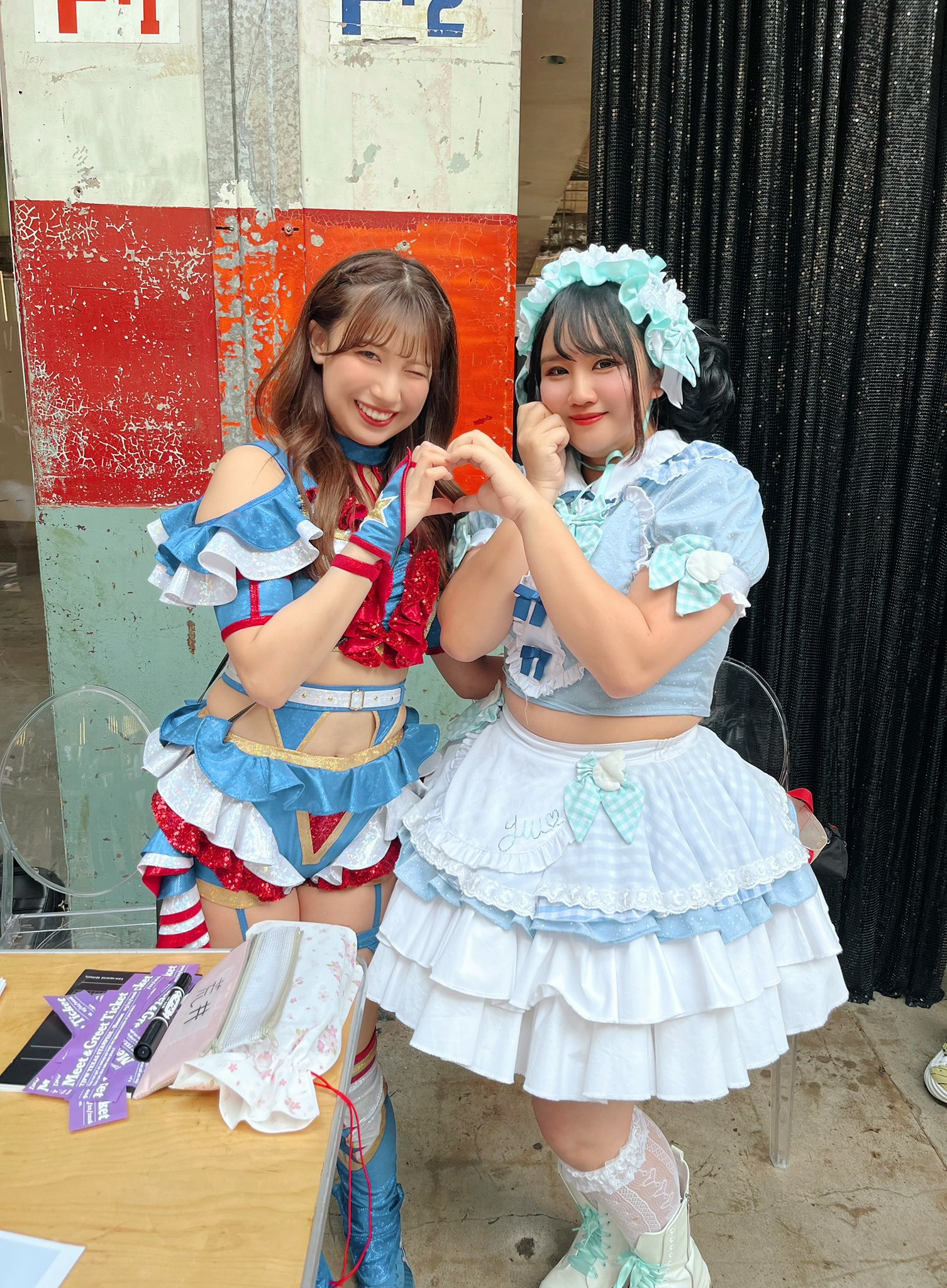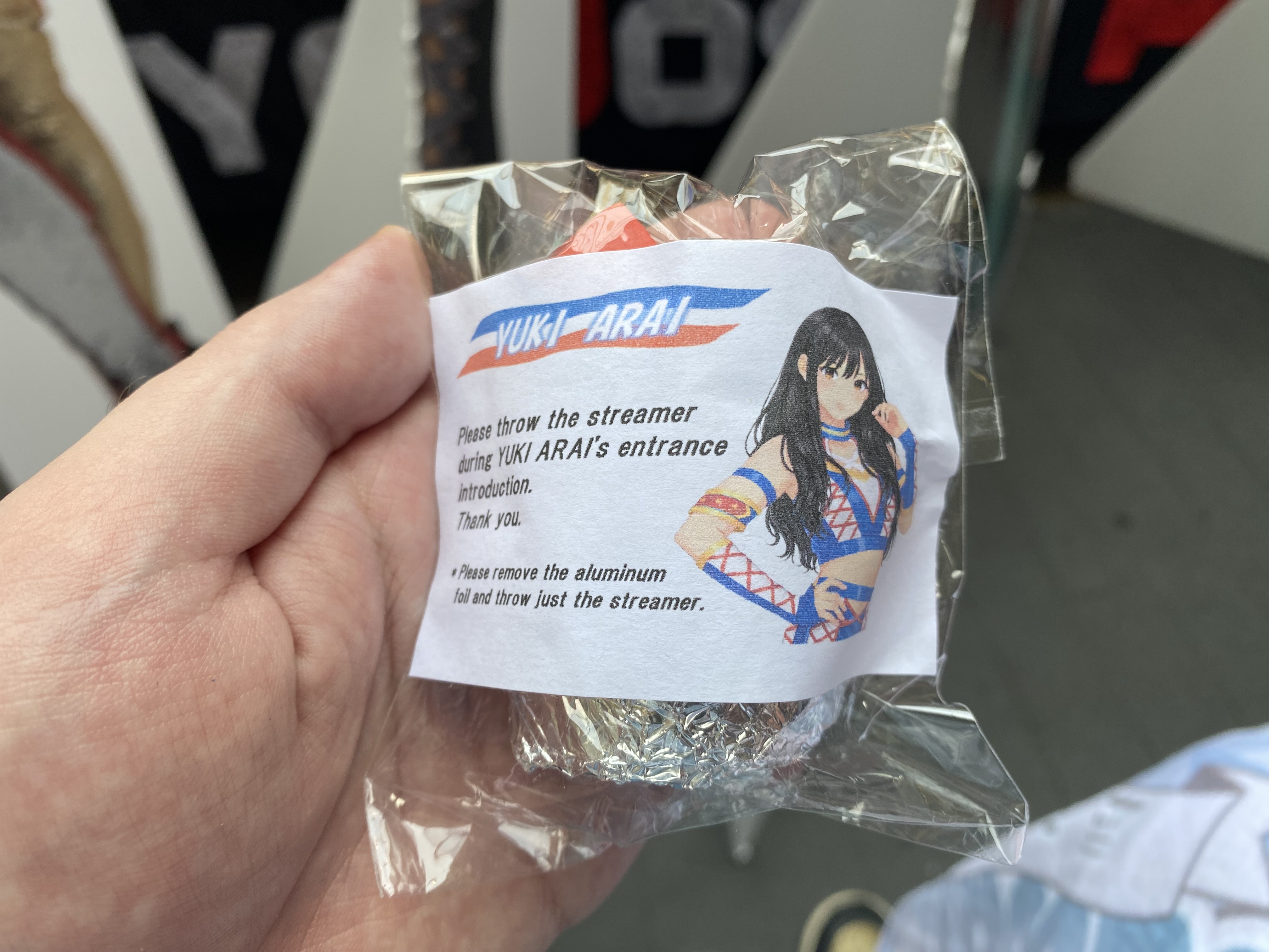 Another good show. Probably the weakest of the four, but still good. I'd say the live crowd was the strongest of the four shows, but it's kind of hard to compare because of the venue sizes. It was definitely the smartest crowd of the lot. The venue is amazing, obviously, but the drawback is that it's basically impossible to do anything cool outside the ring. I don't know how it came across on stream, but from the front row you could reach out and touch the apron with your butt still seated if you stretched a bit. Not a whole lot of notes. The Arai house key bit was amazing. I think it was her shoot house key because it flew out of her hand and landed close to me and it was attached to a whethered keychain that looked like a photo of her with a couple members of SKE48. Being so close I had a lot of players basically in my lap. Shino leaned up against me for a while, and Miyu rolled out of the ring and was lying directly on my shoes for a minute or two which was cool. Rika also more or less grabbed me by the shirt and threw me out of the way for the Shoko dive spot. Pom's shoe landed right in front of me. Miyu and Kamiyu had a LONG conversation while they were laid out on the outside. Had to deal with the cameraman in front of me all afternoon, but it is what it is. Didn't stick around for the meeto but the portrait lines looked long before the show so hopefully they do well.