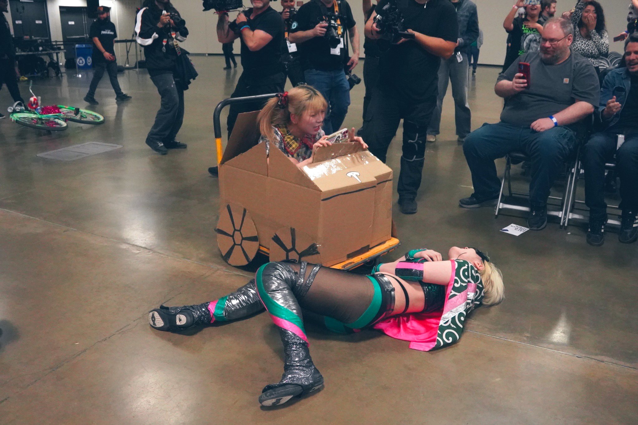 >>20117253Have her come out to the ring with her cape covering half her face, and yell PULL THE STRING before she does her diving cross body.