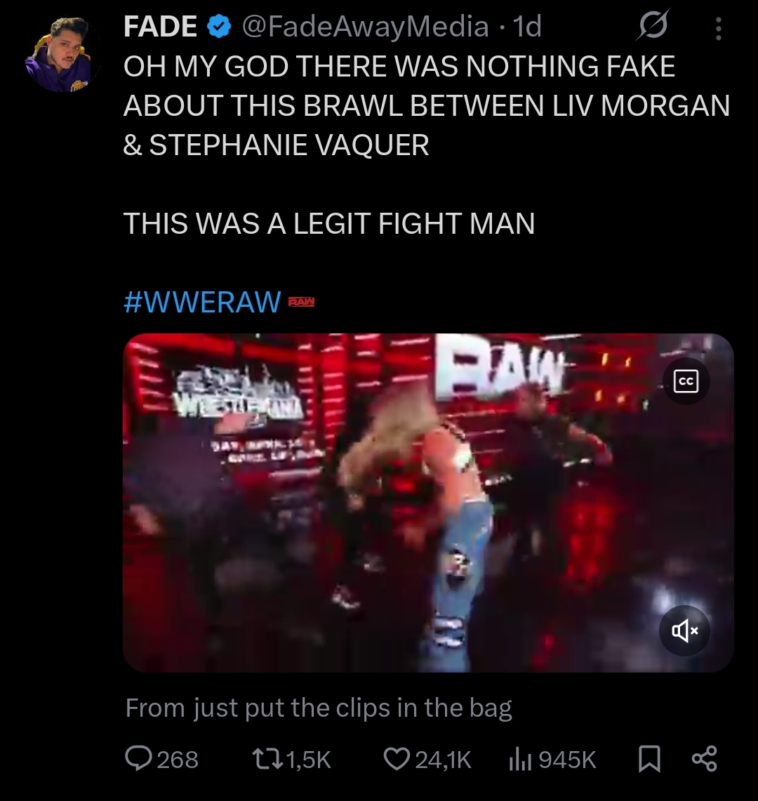 >>20135672Morgan’s injury changed a lot of plans within WWE for multiple superstars recently.Morgan was featured in several storylines including with Women’s World Champion Iyo Sky, WWE Hall of Famer Nikki Bella, and the Judgment Day.Sources indicate that Liv Morgan was initially scheduled to to face Iyo Sky at Night of Champions for the Women’s World Championship.Liv was then scheduled to face Nikki Bella in some capacity at Evolution whether it was a singles match or a tag team match with Raquel Rodriguez against The Bella Twins depending on Brie coming to an agreement with WWE.Further turmoil within the Judgment Day on RAW was also going to lead to a match consisting of Liv Morgan and Dominik Mysterio vs Roxanne Perez and Finn Bálor.