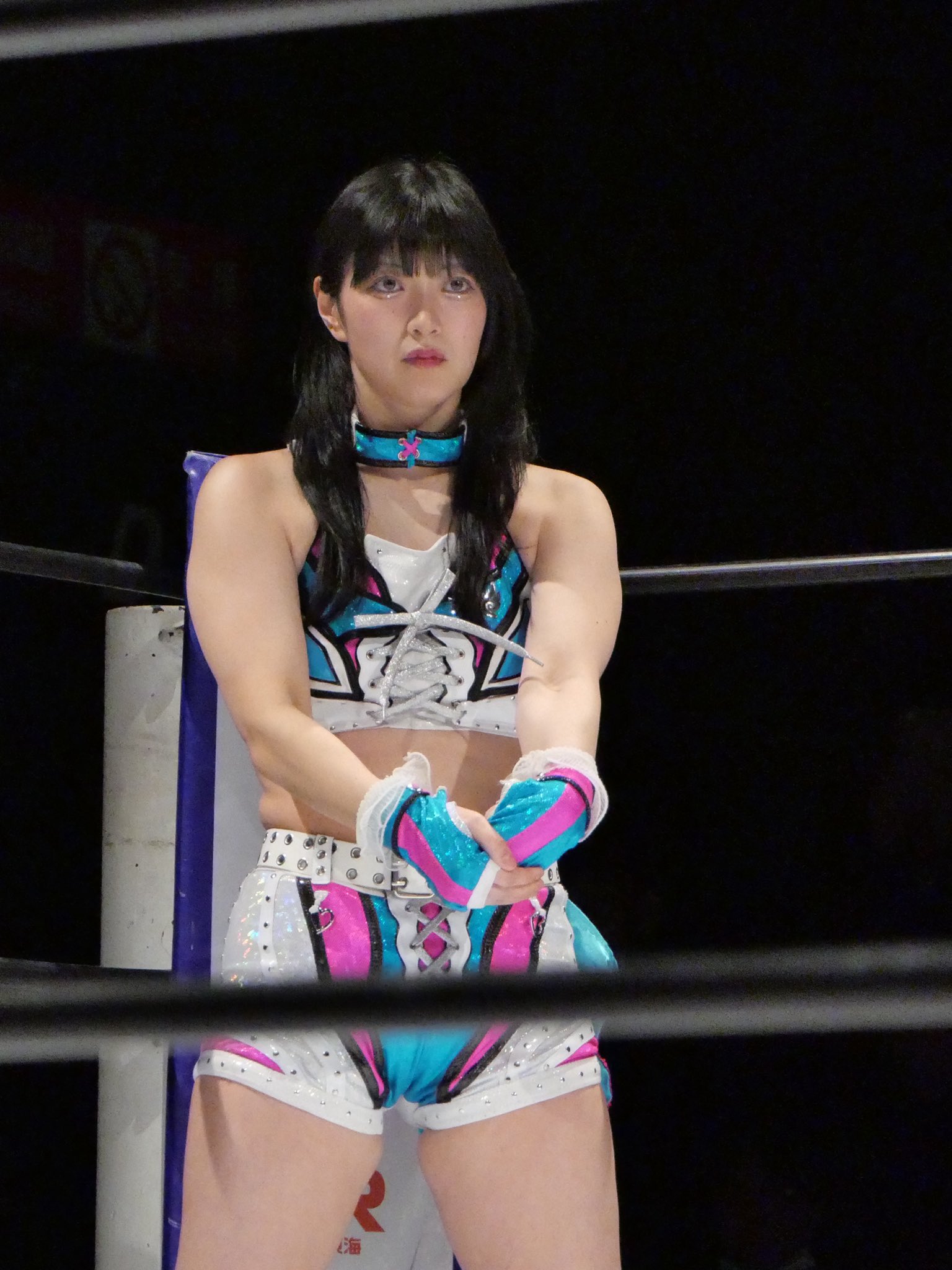 >In my private life, I don't usually wear clothes that show my legs.>That's because I have a complex about my lower body...>But I think it's a great weapon in pro wrestling >Thanks to these legs, I can deliver some brutal kicks!!!>Having thick legs really makes it hard to find clothes I can wear...>Looking for someone who can relate>Azusa is the worst!>Every time she sees a kebab shop, she points and says,>"Tomoka's legs are spinning!">...>Yeah, yeah>But>"Sometimes" she says, "You look cute today!">So it's okay, big sister is happy.>I'll continue to pursue beauty so I don't lose to my little sister's cuteness>LOL>Lolol