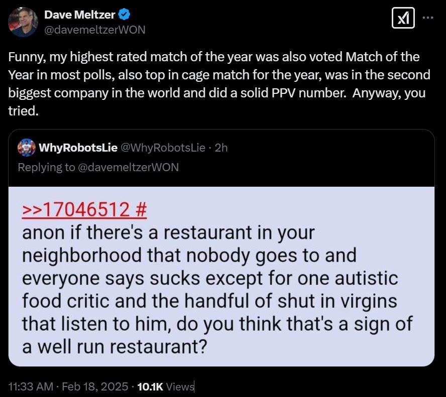 >>20146501Meltzer blocked me for asking about the December 24, 2025 Dynamite rating that was never published