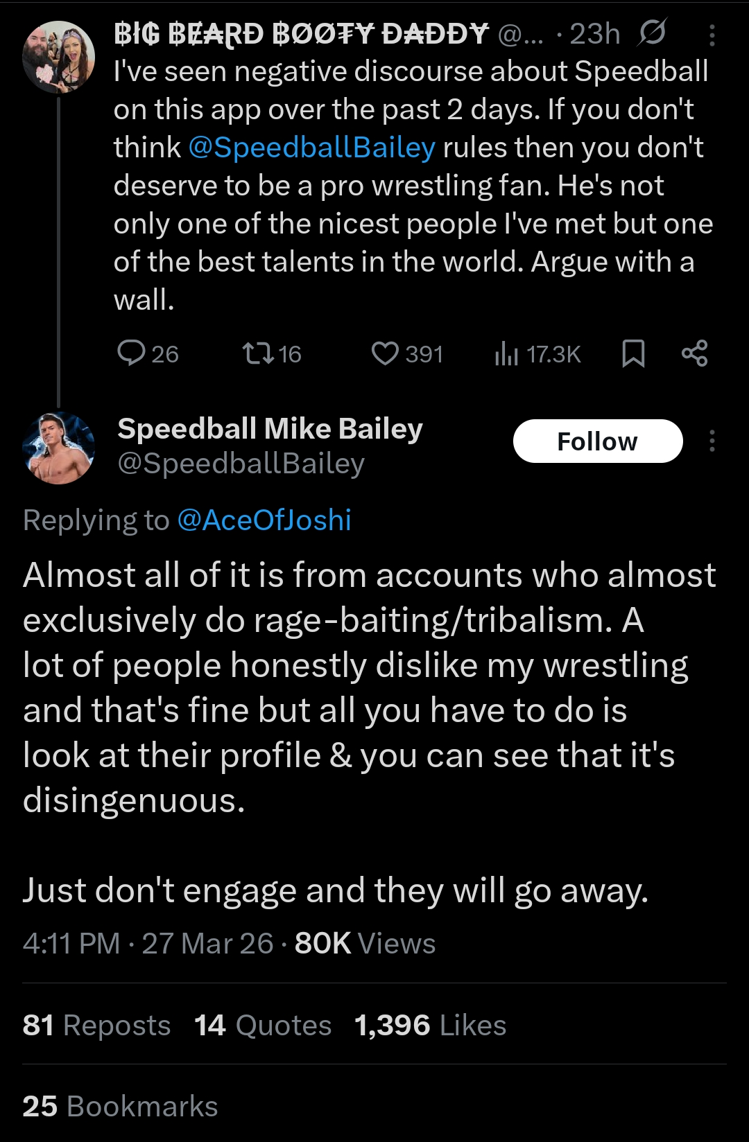 >>20146730>>20146771>>20146829Speedball could literally pulverize your liver with a kick. So I know for a fact none of y'all would say any of this to his face lol.