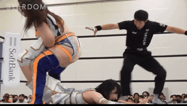 >Daichi throwing Fukigen out of the ring
