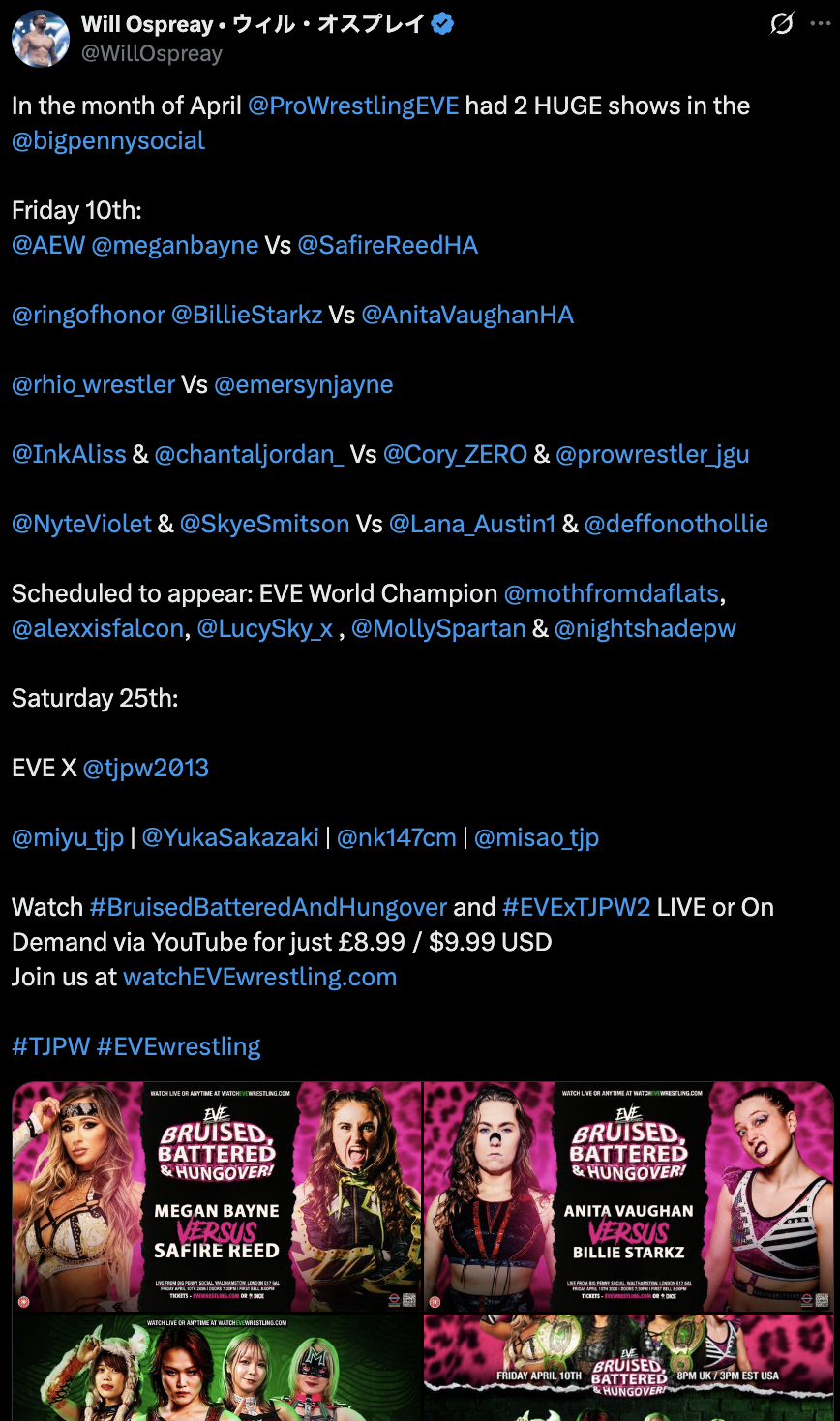 4.25 EVE x TJPW 2 @ Big Penny Social, London (LIVE on Youtube)[19:30 BST]