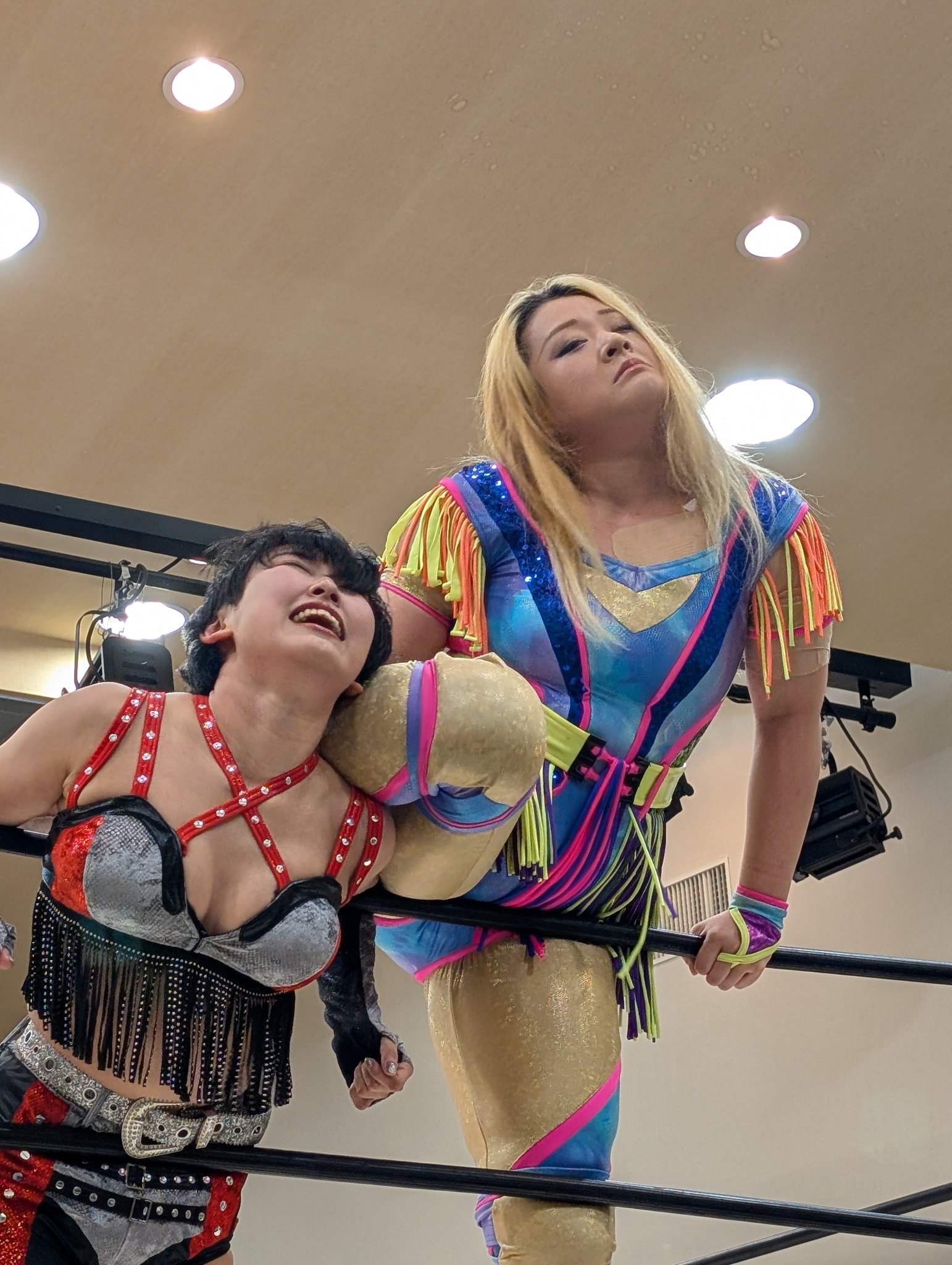 >Thank you for the Niigata show.>Since that recent six-woman tag, I got to face Shinno-san in a singles match this time, and I was happy to get to know Shinno-san better!>Even though there’s still one more day left, my lower back is already—>But I won’t let it get me down!!>#pw_mghttps://x.com/AI_marigold12/status/2040442563489075365