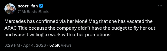 But I thought she elevated every promotion she won a title from and made them a ton of money? Why couldn't they afford to fly her out? You know, after all that money she made them just by having their belt