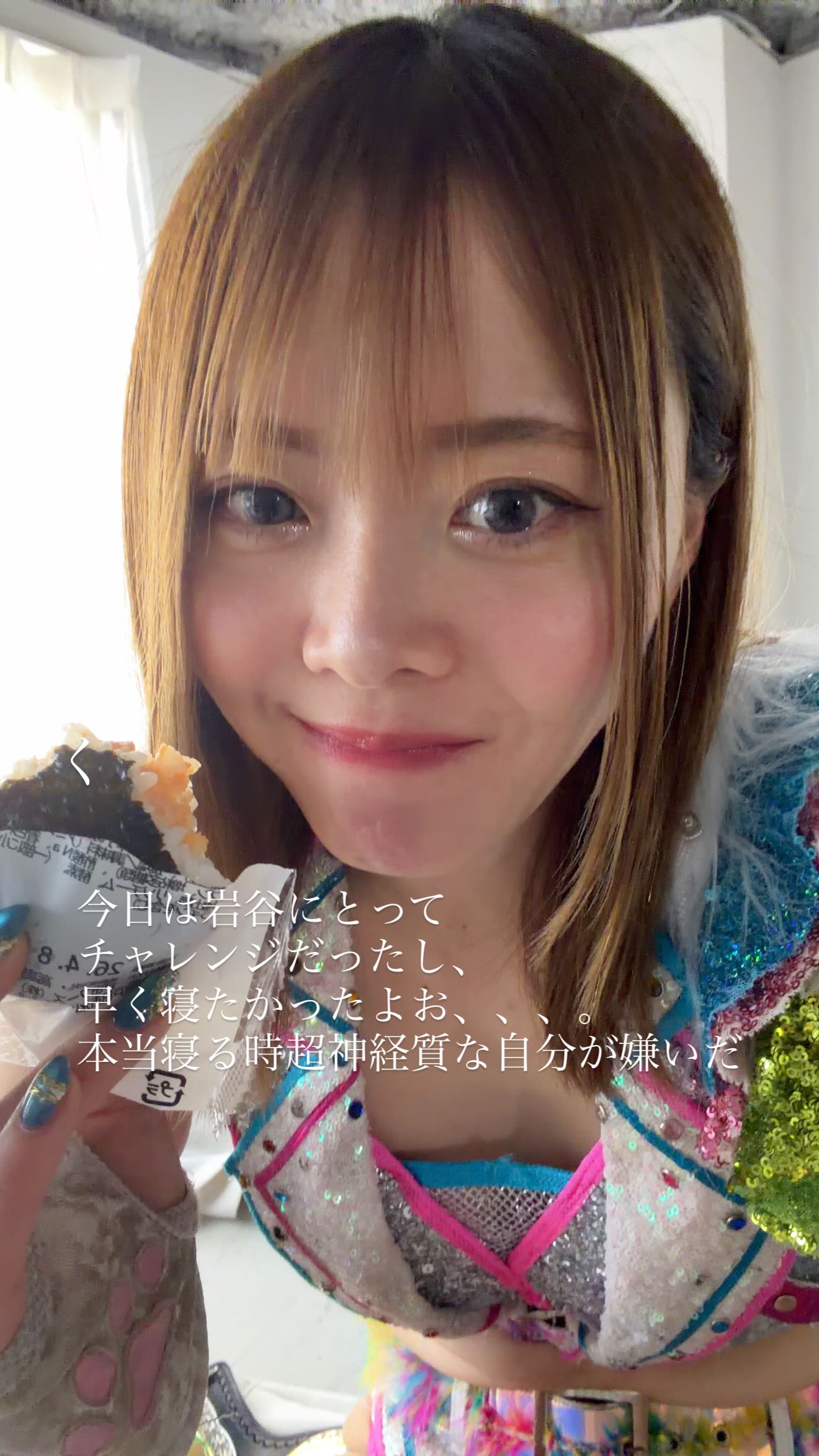 >Today was a challenge for Iwatani, and I really wanted to go to bed early. I hate how overly anxious I am when it comes to going to sleep.Mayu needs a boyfriend to help her relax and sleep